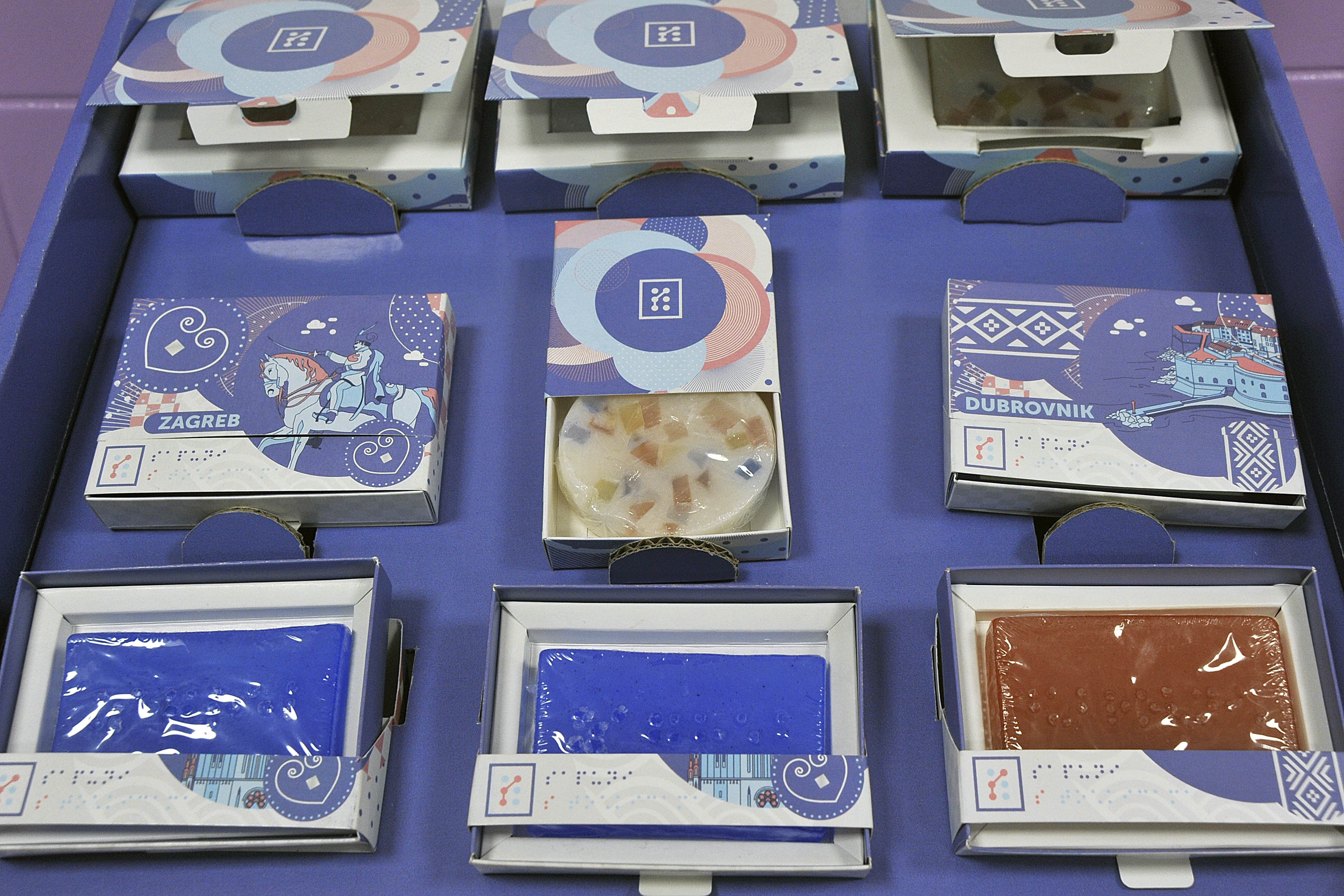 U dijelu starog pogona Zagrepčanke – nekadašnje mesne industrije u Heinzelovoj ulici – slabovidni proizvode suvenir-sapune s »točkicama«, odnosno natpisima na Brailleovom pismu, koje prodaju na tržištu, odnedavno i online. Sapune distribuiraju zagrebačkim suvenirnicama, neko vrijeme već i u dubrovačke suvenirnice, no kod njih se mogu naručiti – tvrtke i pojedinci – i personalizirani sapuni s natpisima na »brajici«, primjerice s imenom kompanije i slično, što je itekako lijep poklon za klijente ili prijatelje, a svakako doprinos trudu Udruge slijepih Zagreb.