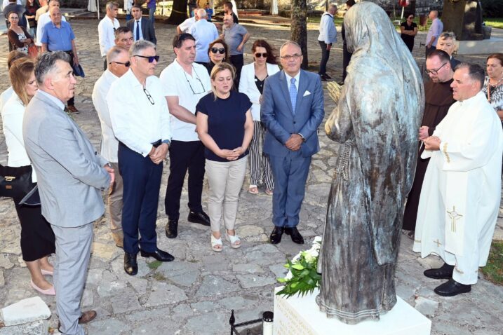 Njen kip podignut je 2018. godine na Trsatu u povodu 40. godišnjice posjeta Trsatskom svetištu, na inicijativu Zajednice Albanaca Primorsko-goranske županije te uz podršku Riječke nadbiskupije, Trsatskog svetišta, Vijeća albanske manjine u PGŽ-u, Rijeci i Crikvenici te pod pokroviteljskom saborske zastupnice Ermine Lekaj Prljaskaj, Primorsko-goranske županije i Grada Rijeke.