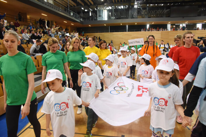 Sudionici natjecanja u društvu svojih odgajateljica prodefilirali su parketom dvorane, a potom je u počasni krug krenula i olimpijska baklja koja je ugrijala male sportaše i njihove roditelje koji su ih podržavali s tribina.