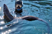 Kad sam se spustio ugledam u dubini špilje kako glava znatiželjno izlazi prema svjetlu. Vidim da je ugor i vidim da će tribati nešto jače za njega. Izranjam i uzimam jaču pušku…