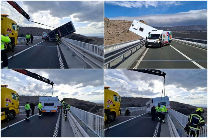 Zbog vjetra prekinut promet na A1, Pag je odsječen od kopna. Most je zatvoren, a trajekti ne voze
