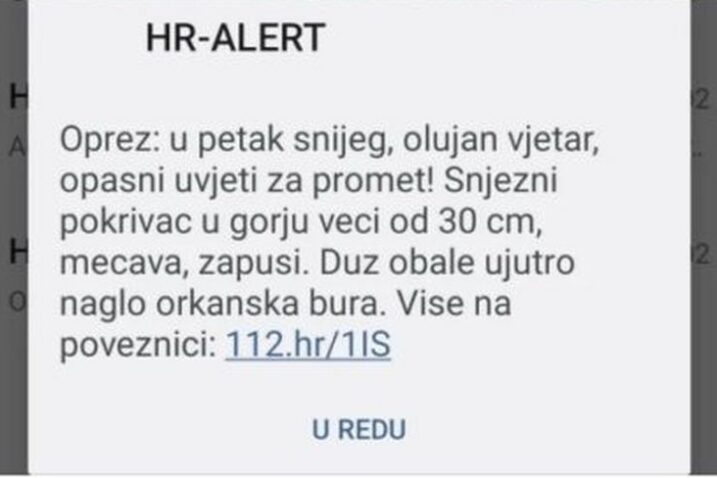 Ako se prehladin, vranić me zel ako neću poć tužit 112. Kako j’ to bezobrazno, sen poslat poruku da će nevrime, sneg, bura, črni led, mrzlina i ča ti ga ja znan ča se ne, a mane ni bu, ni mu. Ni prvi, ni drugi dan. I tako va neznanju, aš ki bi va sred zimi očekival ni sneg, ni buru, a o mrzline da ni ne govorin kad se to obično dogaja va sedmomu mesecu. O tomu da bi sneg va prvomu mesecu mogal padat va Gorskomu kotaru ale Like, ni da bi bura mogla puhat va Senju, a magistrala bit zaprta, da ni ne govorin. Ma, komu normalnomu bi to palo na pamet. Kako nisan dobila ni precjednikovo, ni bilo čigovo drugo upozorenje, lipo san zišla vanka na lahko obučena i sad čekan ću se moć vrnut doma aš sneg pada i spred Novoga lista i ću se va tomu čekanju i prehladit.