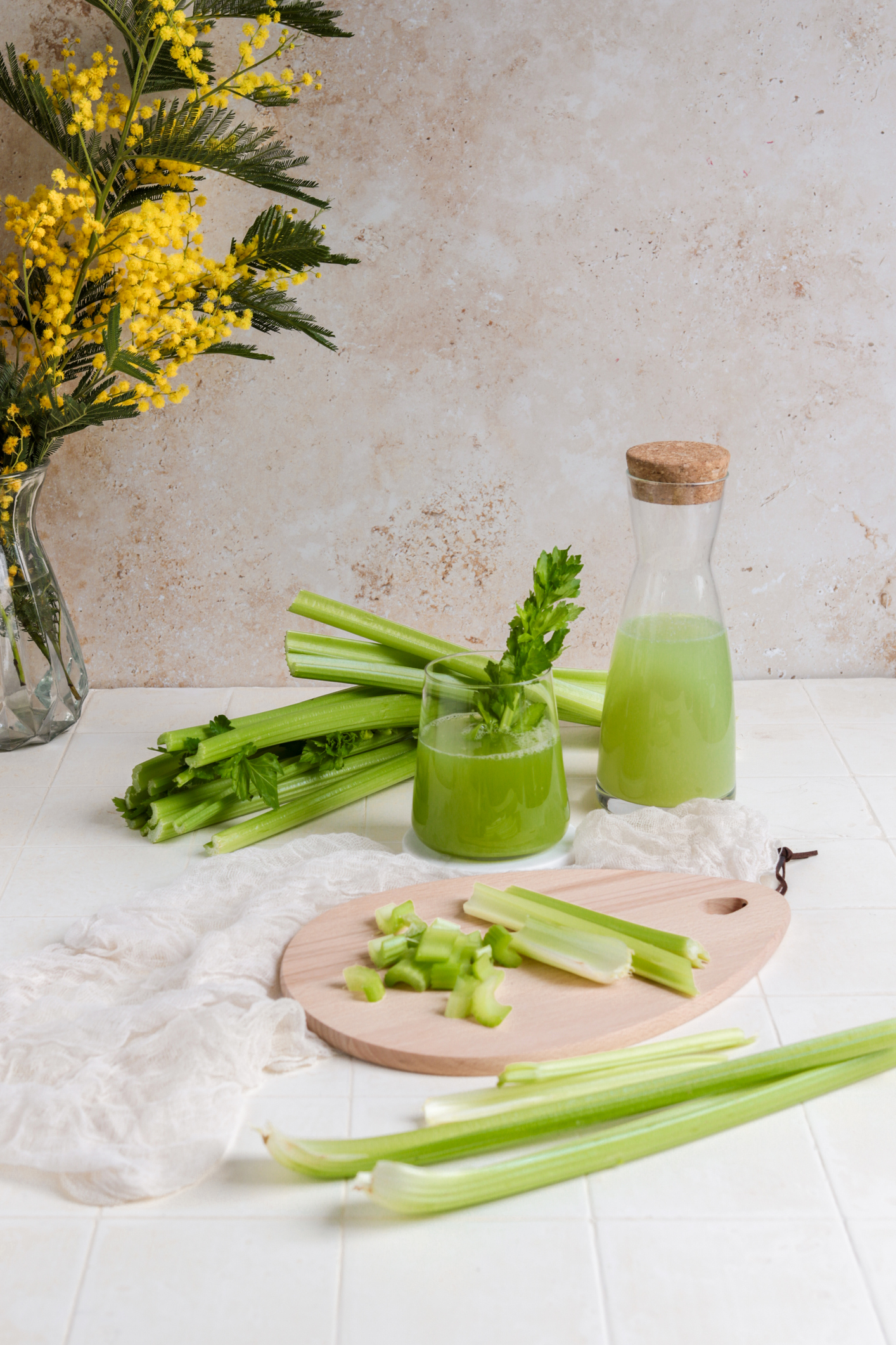 Razbijanje hrskavih, vlaknastih stabljika zubima, pomaže u uklanjanju plaka koji uzrokuje mrlje i potiče proizvodnju sline.