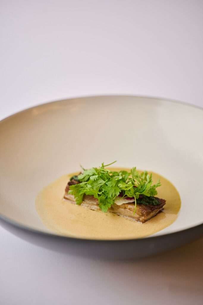 U nastavku večeri Jorg Zupan poslužio je odvažnu kombinaciju dimljenog jezika sa zelenim paprom i radičem, a domaćin i ambasador projekta David Skoko predstavio je barbuna uz kremasti pire od karfiola i pastrnjaka.