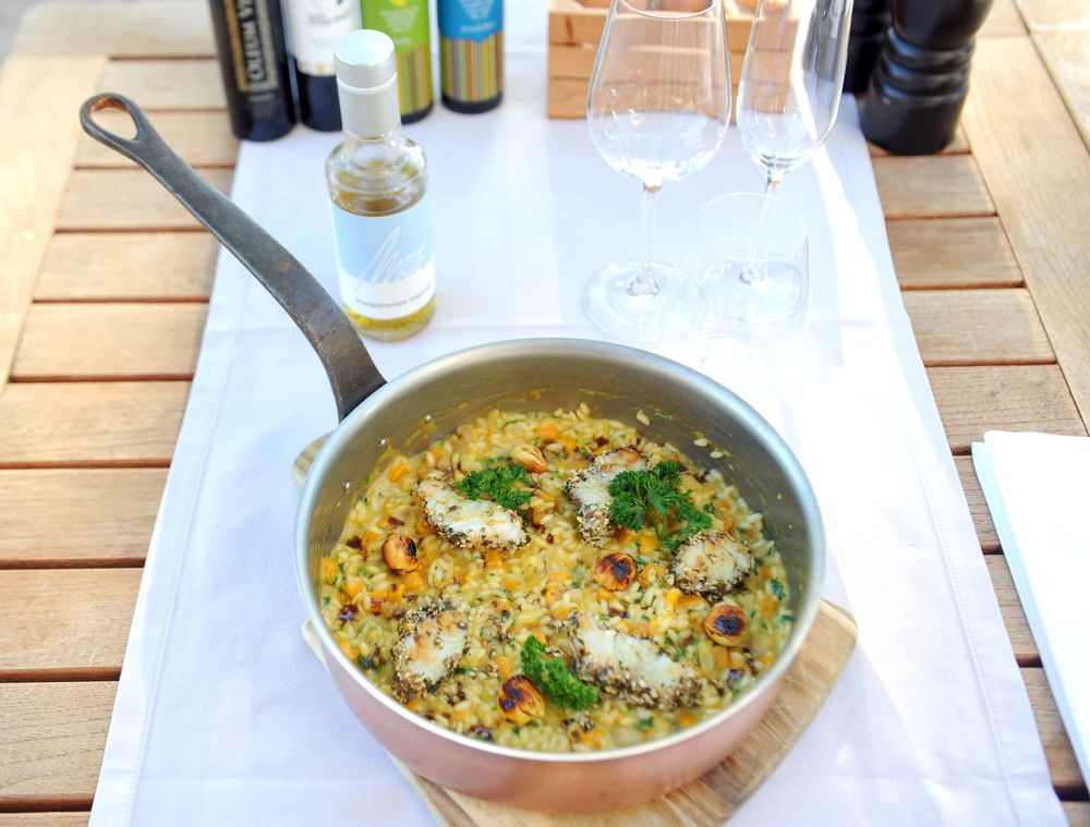 Na iznimno ukusan rižoto s bučom, kestenom i pečenom grdobinom nadovezala su se pačja prsa sa žara s umakom od porta i suhih šljiva. Na kraju se savršeno uklopio desert crème brûlée i kolač od tamne čokolade i Baileysa.
