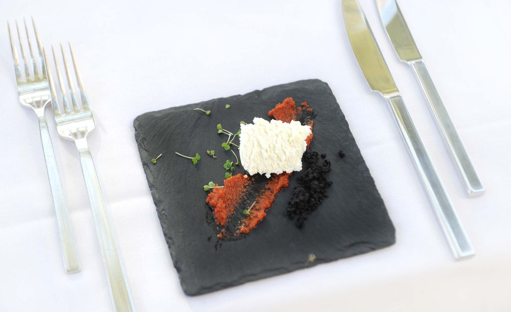 Slijed jela baziran na plodovima jeseni započeo je s predjelom naziva »Pozdrav iz kuhinje« u kojem je prezentirana kravlja skuta s mikrobiljem od rukole, poslužena na zemlji od crnih maslina i kremi od suhe rajčice. Slijedio je carpaccio od sabljarke s tartarom od beluga leće.