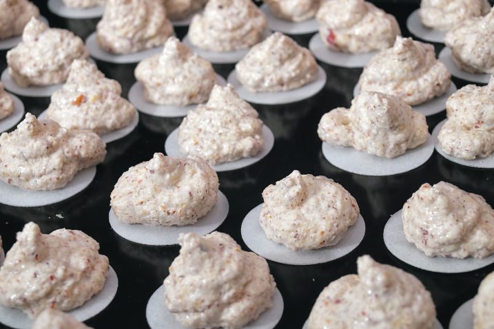 Kada ste dobili kompaktnu smjesu staviti ju u vrećicu za ukrašavanje i pažljivo istiskujući na pleh obložen masnim papirom oblikovati puslice. Razmak između svake neka bude 2 centimetra.