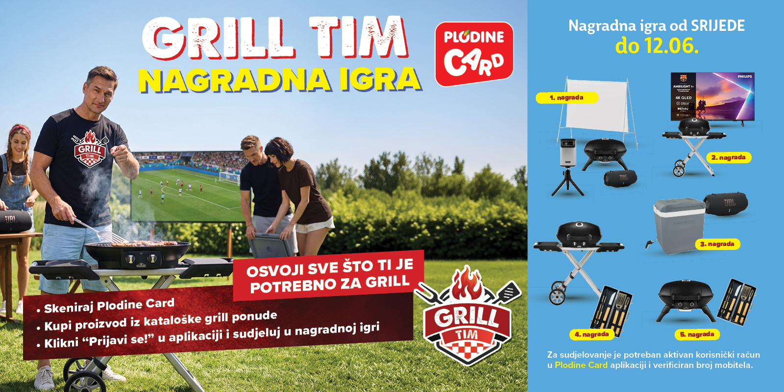 Zato Plodine ove sezone nisu samo mjesto kupnje, nego generalni sponzor svakog Grill tima. Stoga, sada je pravi trenutak da okupite ekipu, podijelite uloge i podignete svoj roštilj na višu razinu.