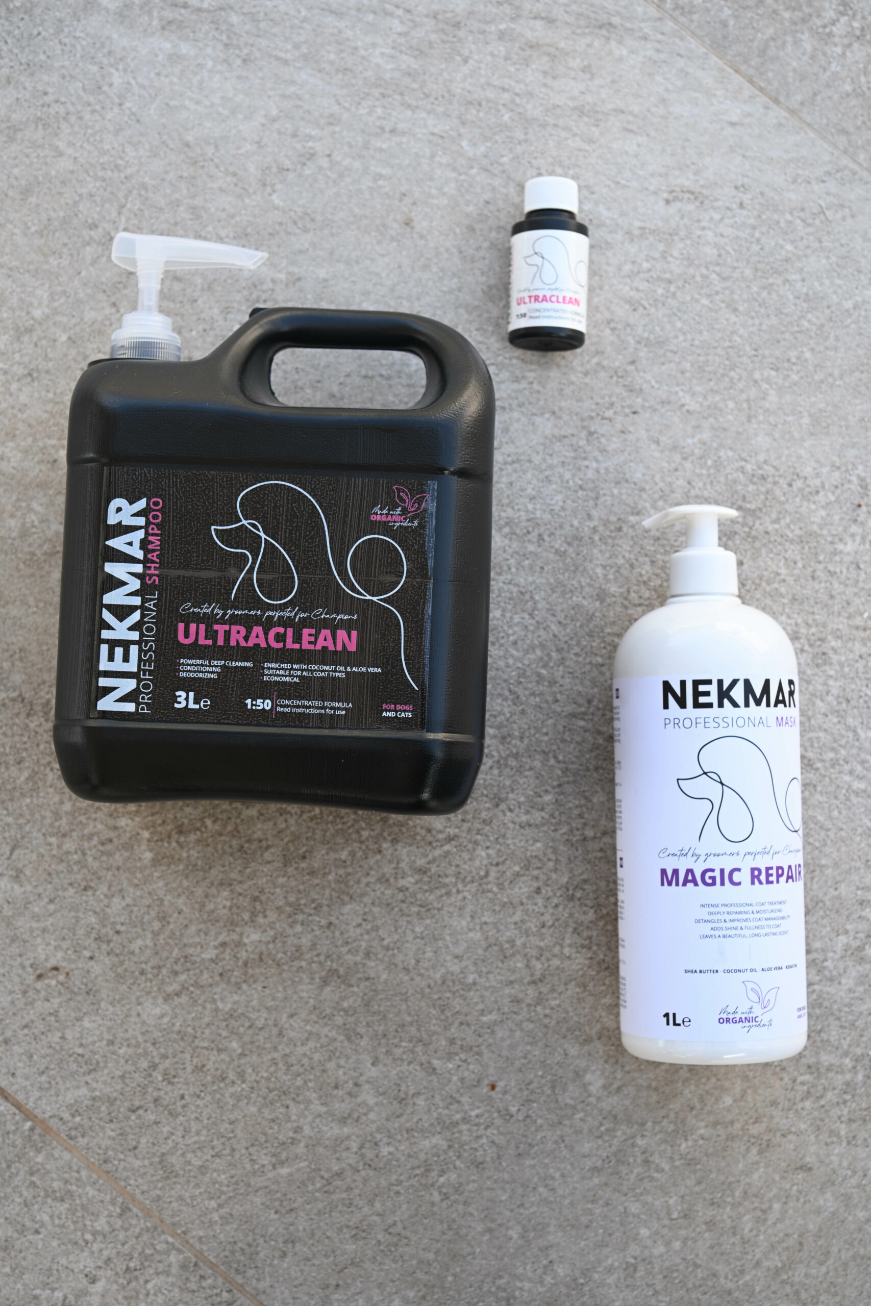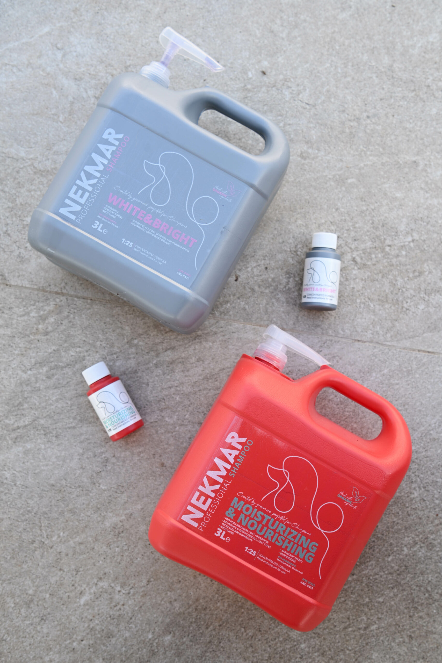 Stoga su (za sada) u Nekmar ponudi Derma Relief za korištenje na osjetljivoj, oštećenoj i iritiranoj koži i dlaci, Volume coat šampon, Moisturizing & Nourishing šampon za maksimalnu hidrataciju i dubinsku njegu dlake i kože, White & Bright za naglašavanje prirodne boje i pigmentacije dlake, Ultraclean Profesionalni šampon za dubinsko pranje svih tipova dlake te Magic Repair maska koja dubinski obnavlja, revitalizira i vraća u život oštećenu ili suhu dlaku.