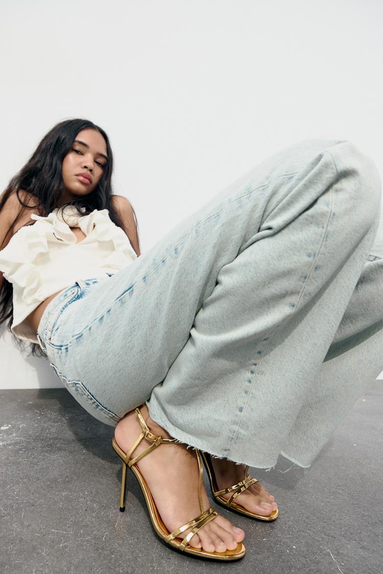 U aktualnoj ponudi high street brenda Zara pronašli smo savršene ljetne zlatne sandale. Dolaze u metaliziranoj verziji, stoga još dolaze do izražaja. Peta je visoka 9,5 centimetara, a remenčići pružaju stabilnost.