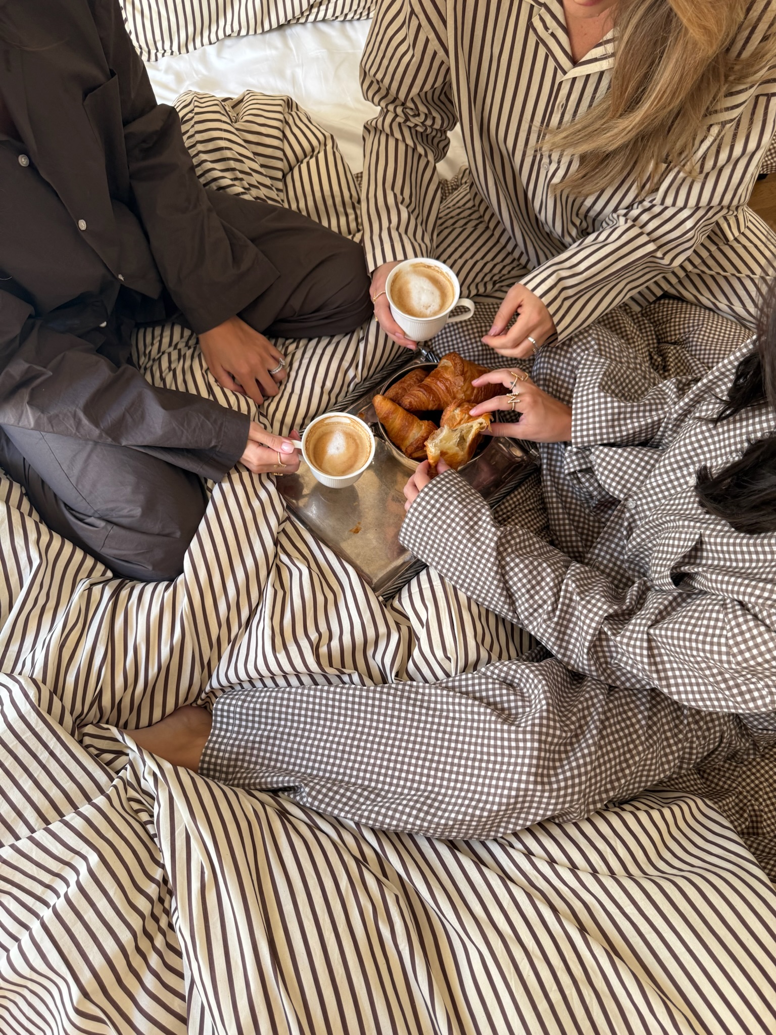 Pidžame dolaze u tri varijante – prugastoj, kariranoj i jednobojnoj smeđoj – a svi modeli izrađeni su od 100 posto pamuka, u skladu s dosadašnjom filozofijom brenda. Namijenjene su i za spavanje i za sporija jutra kod kuće, bez potrebe za kompromisima između udobnosti i estetike.