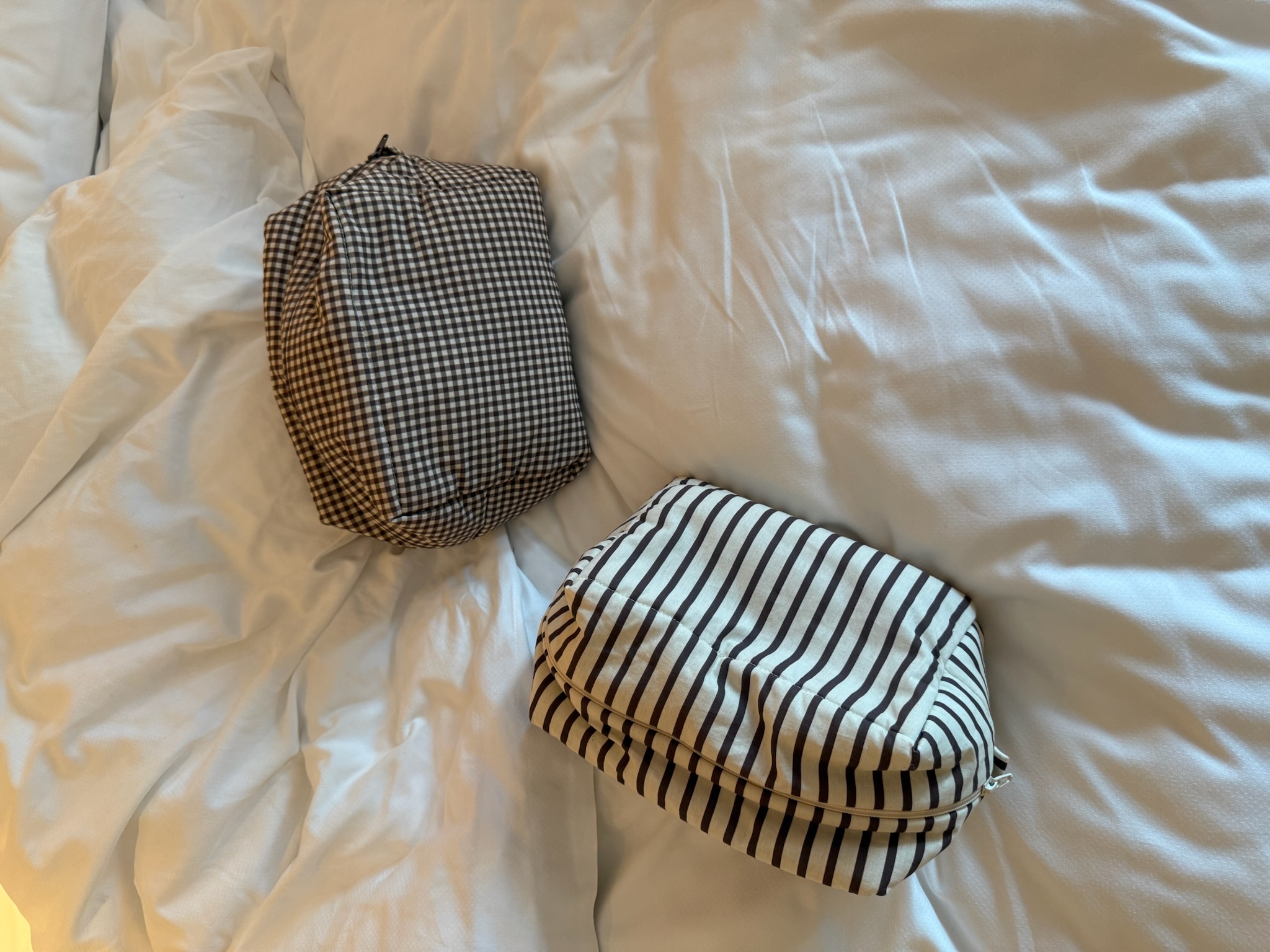Novost u kolekciji su i posteljine te manji dodaci u istim uzorcima. Ideja je da se cijeli krevet može uskladiti, od jastučnica i navlaka do praktičnih torbica koje se mogu koristiti za spremanje kozmetike ili kao jednostavan poklon. Kombinacija pruga, kockica i toplih smeđih tonova stvara nenametljiv, smiren ugođaj u spavaćoj sobi.