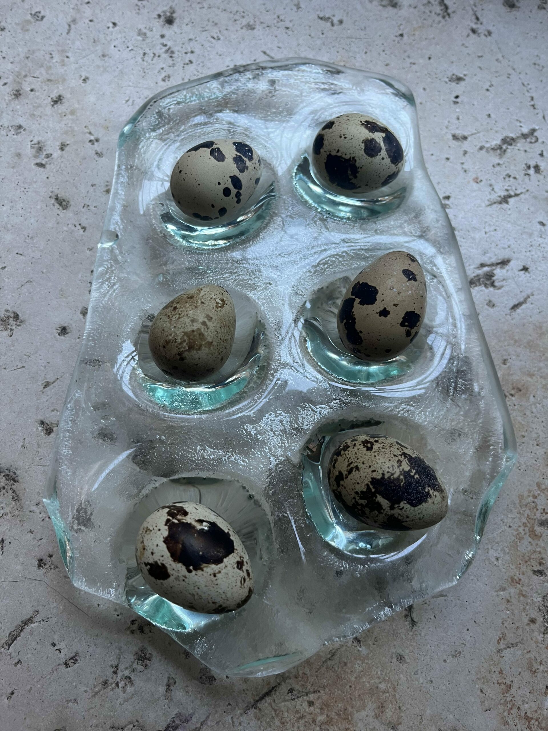Kod objekata za hranu tehnički je proces drugačiji. Prije samog slijeganja stakla potrebno je izraditi kalupe od šamotne gline, koji zatim služe za oblikovanje. Ovisno o potrebi, staklo dodatno brusim, poliram, bušim i doradujem ručno, sve dok objekt ne dobije svoju konačnu funkcionalnu i estetsku formu.