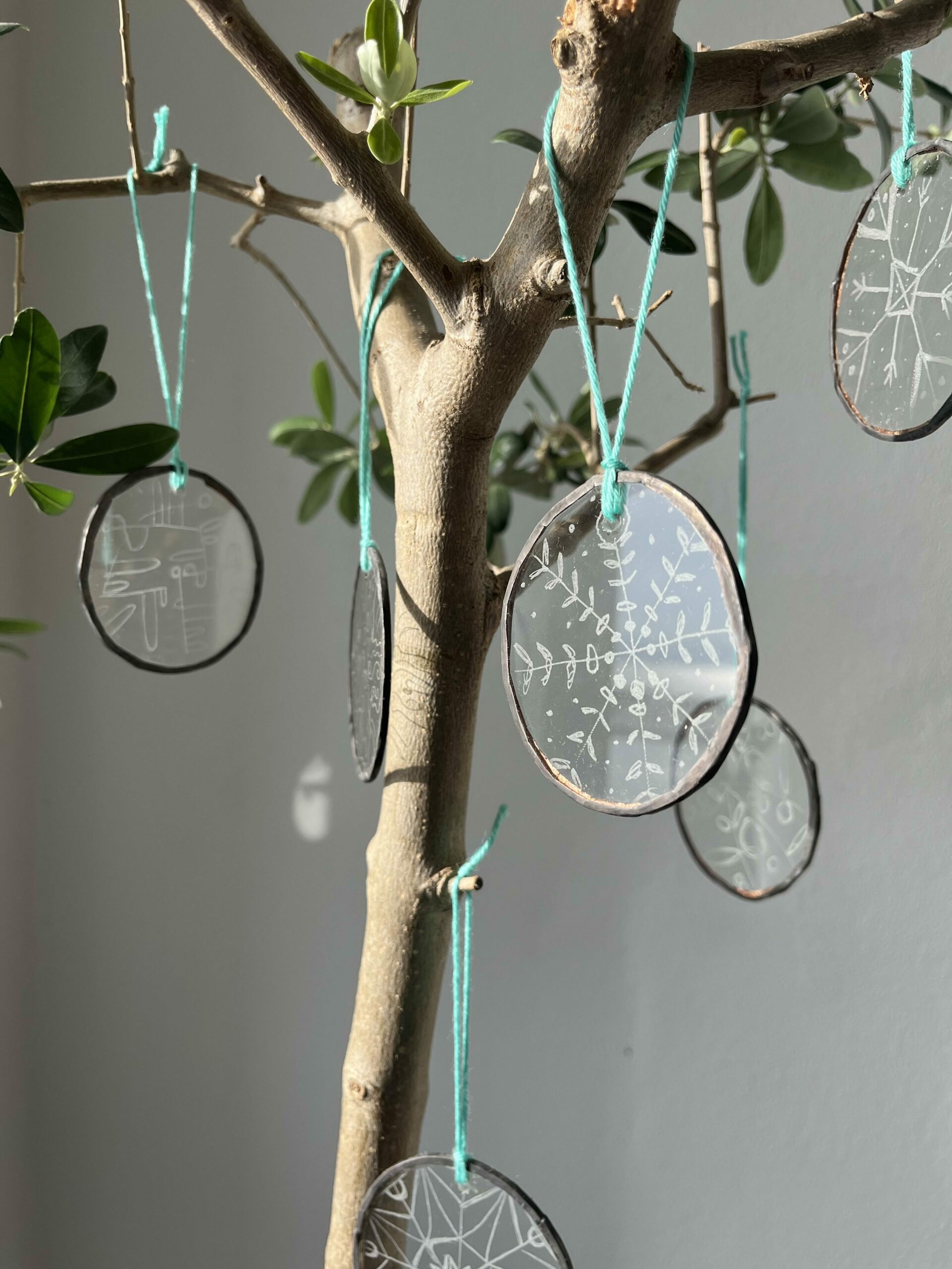 Što se samog stakla tiče, jedan svjetlosni objekt nastao je hladnom obradom: iz 10 mm debelog stakla rezala sam krugove koje sam potom ručno obrađivala kliještima i na kraju povezivala UV-ljepilom.