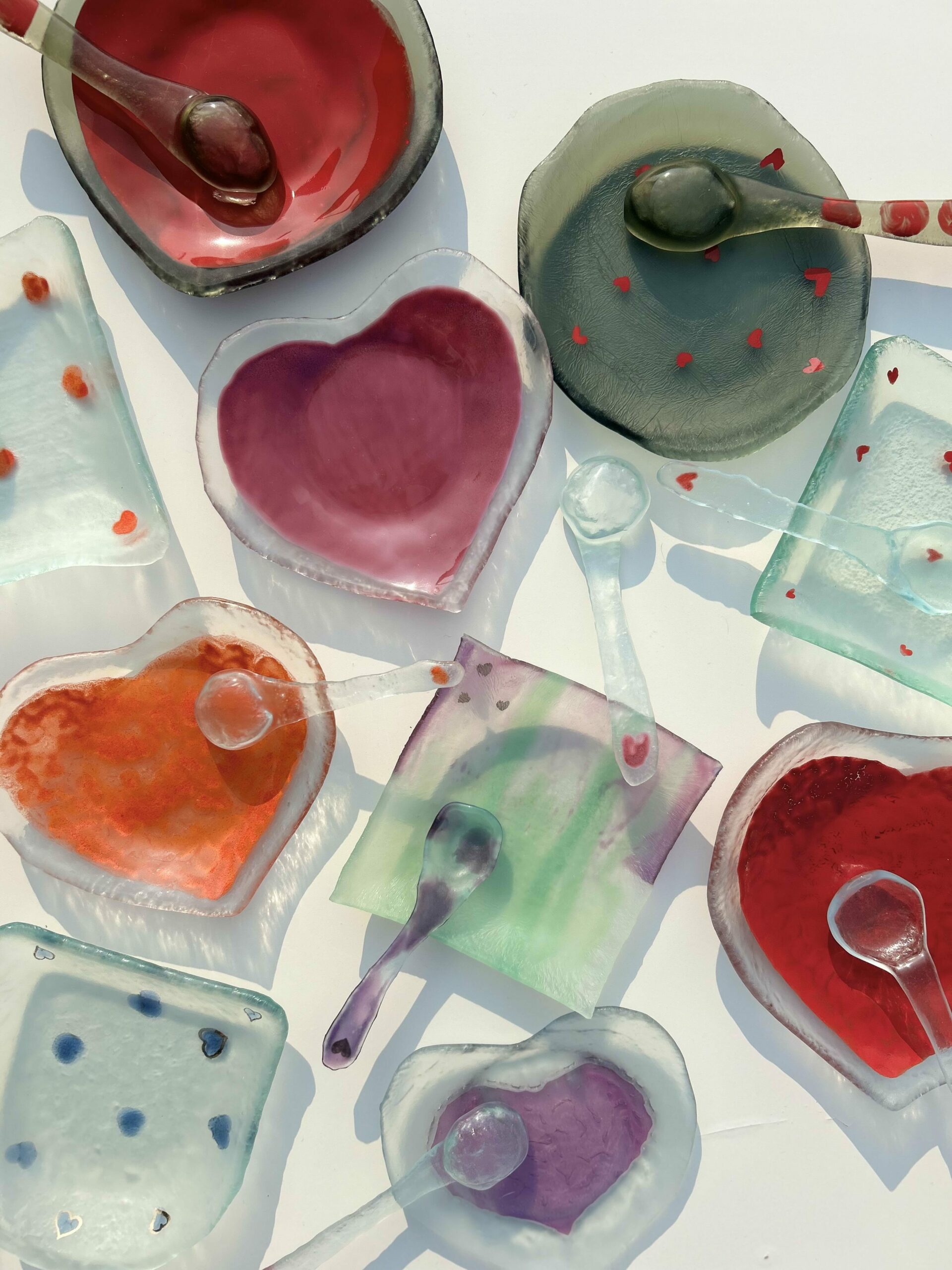Ostali objekti iz serije nastali su tehnikom fuzije stakla – izrezivala sam komade stakla, izrađivala kalupe od keramičkog papira i potom ih toplinski obrađivala u peći.