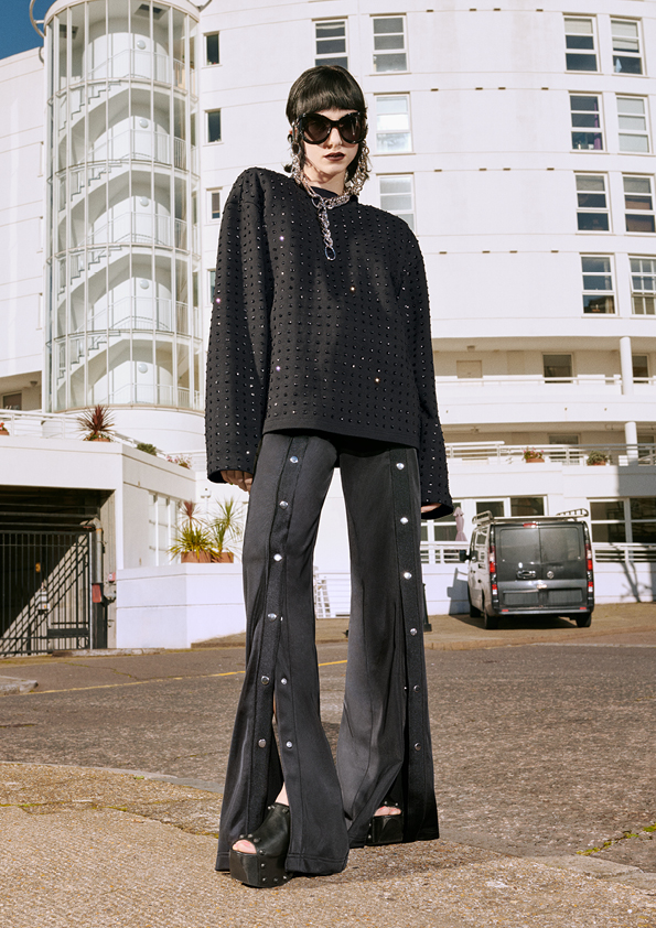 Ključni komadi zrače stavom ‘vidjeti-i-biti-viđen’. Od avangardnog trapera na vezanje i kombinezon-odijela, do limeta-zelenog satena i kupaćih kostima s leopard uzorkom koji se mogu nositi bilo gdje, ovo su kombinacije koje plijene pažnju. Mini suknja od trapera sa šiljcima, mrežasti gornji dio s volanima i mala crna haljina obrubljena kamenčićima podsjećaju na ekscesivno raspoloženje kasnih 1990-ih.