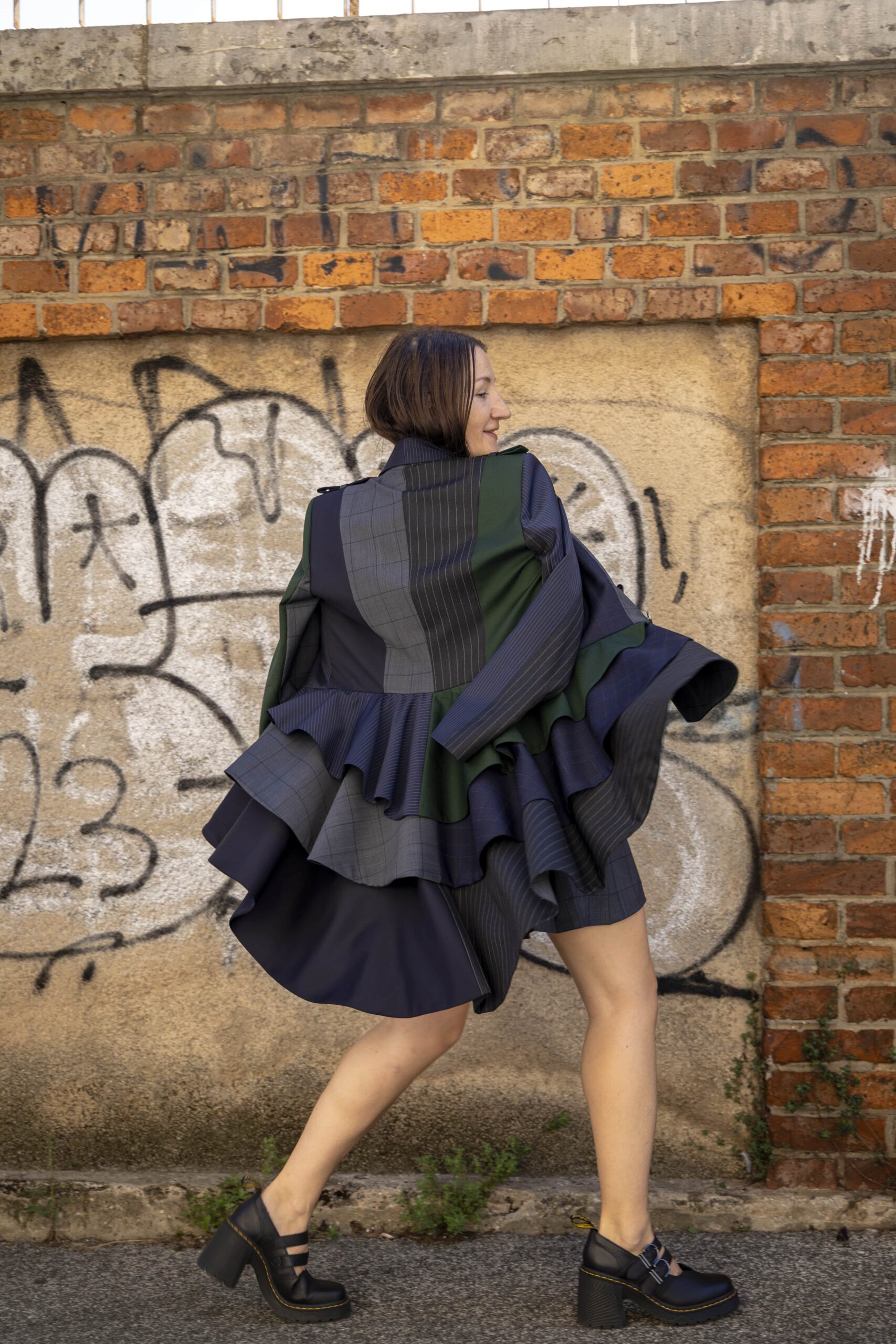 Predstavljam nove modele hlača koje mogu imati sve nogavice različite. Tu je i Crazy Royal jakna, model jakne koji se može nositi na 3 i više načina. Svaki odjevni predmet je unikatan jer ga izrađujem po mjeri i jedinstvenoj kombinaciji vunenih tkanina.