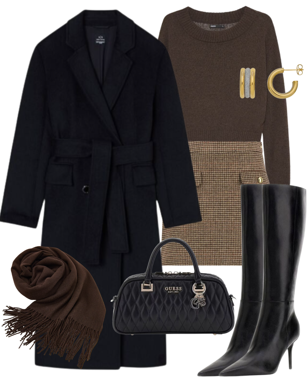Mini suknja Barbour Sophia, 165,00 eura, 5 star Fashion, 3. kat, Džemper, 19,99 eura, Cropp, 4. kat, Kaput Armani Exchange, 404,00 eura, Fashion&Friends, 2. kat, Čizme do koljena, Guess, 290,00 eura, Fashion&Friends, 2. kat, Šal od mješavine viskoze, 15,99 eura, Reserved, Prošivena torbica, 145,00 eura, Guess, Fashion&Friends, 2. kat, Kayla zlatne naušnice, 732,00 eura, Prahir, 3. kat