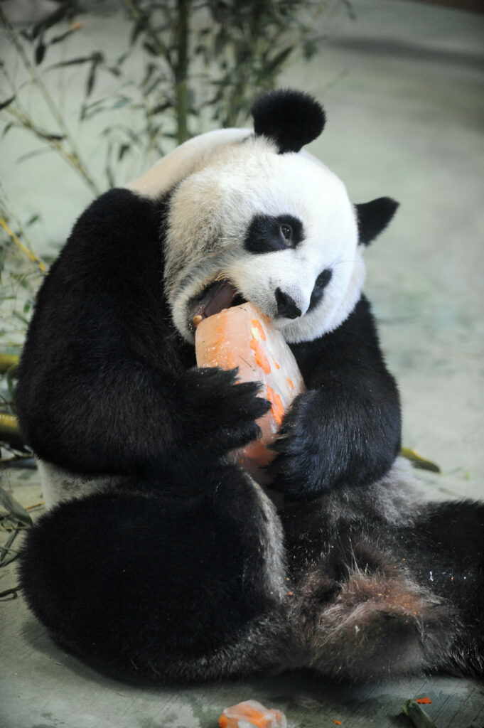 Na fotografijama koje je objavio zoološki vrt, Yuan Yuan je viđena kako uživa u svojoj posebnoj rođendanskoj torti, koja je napravljena od ledene podloge, šećerne trske i njezinog omiljenog voća poput ananasa, kivija i grožđa.