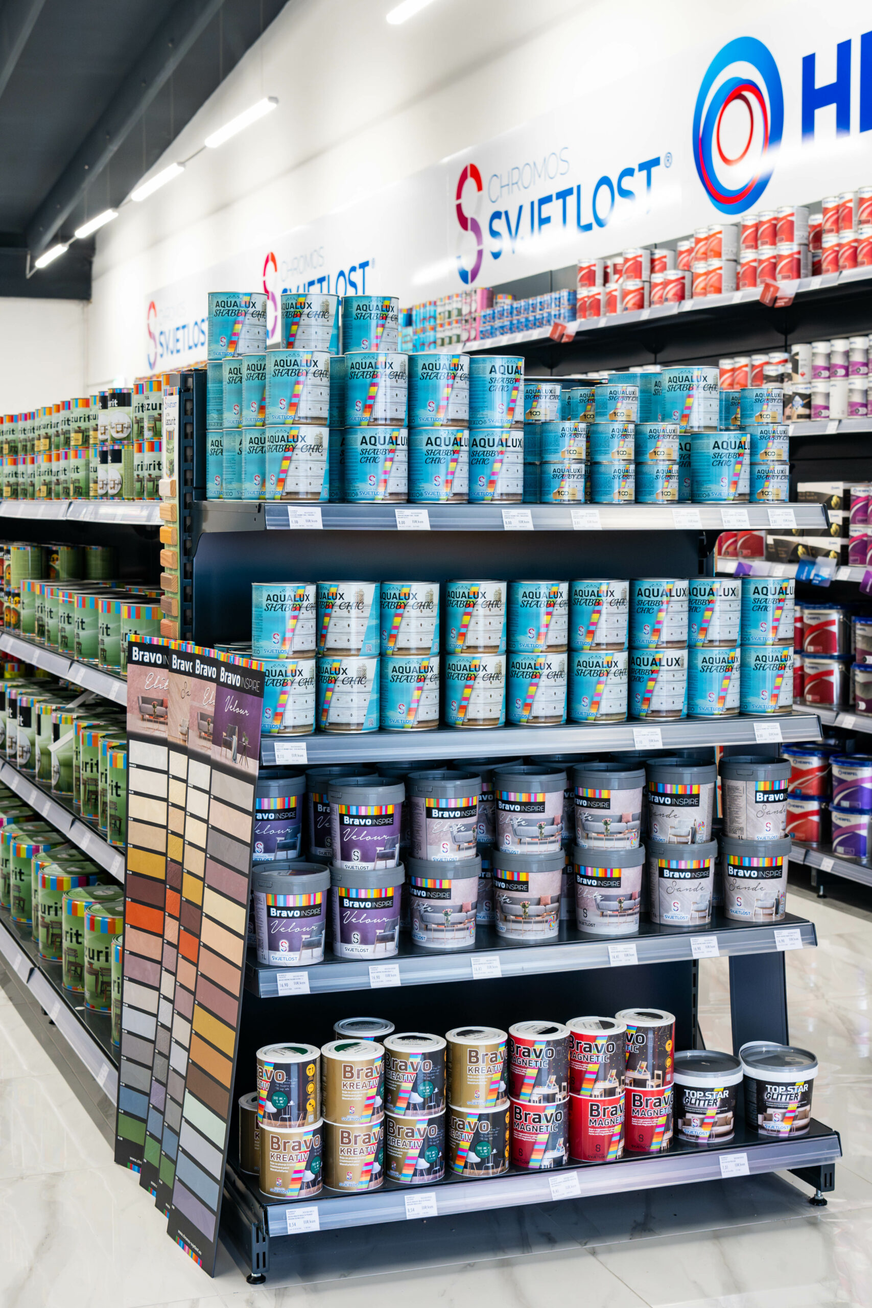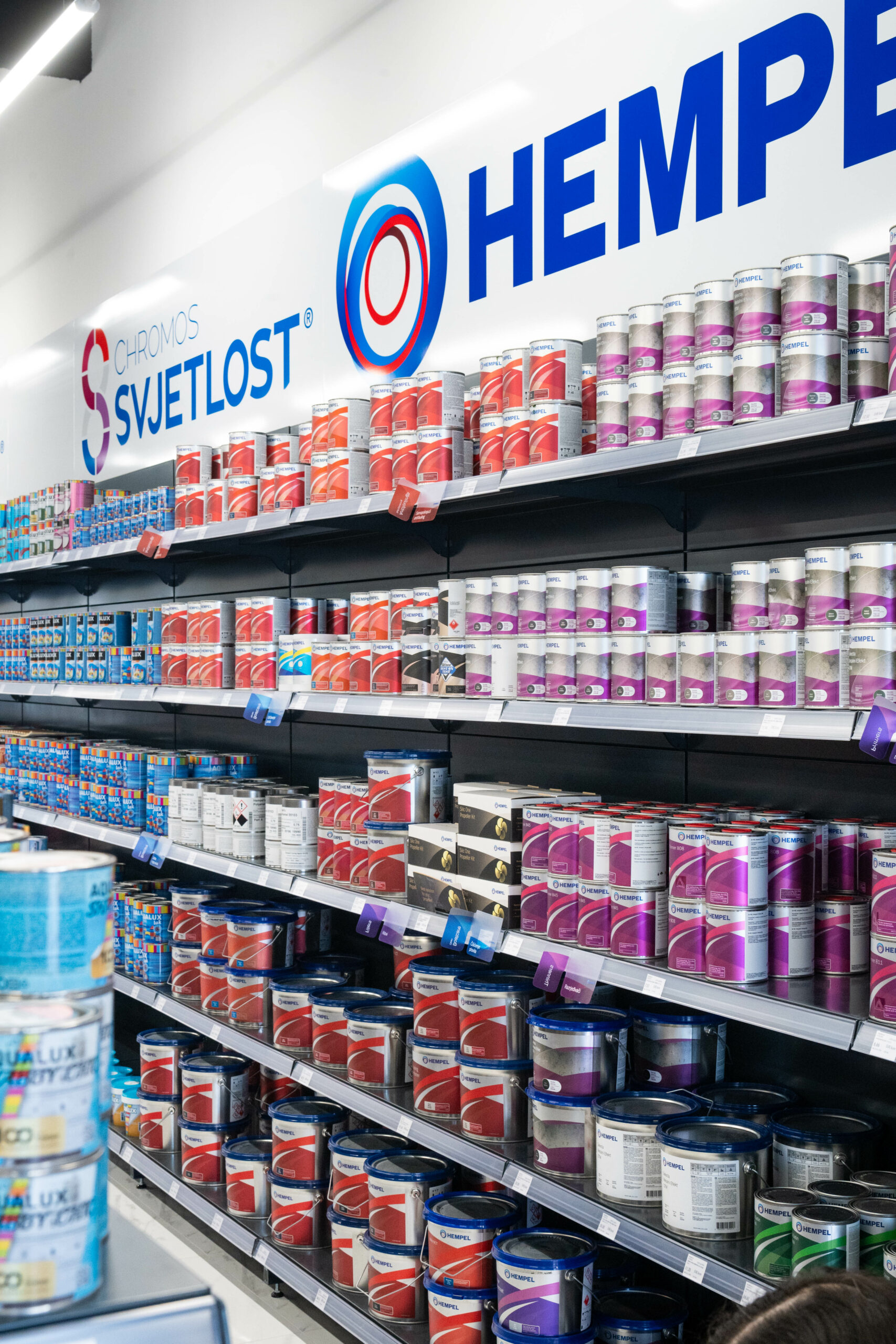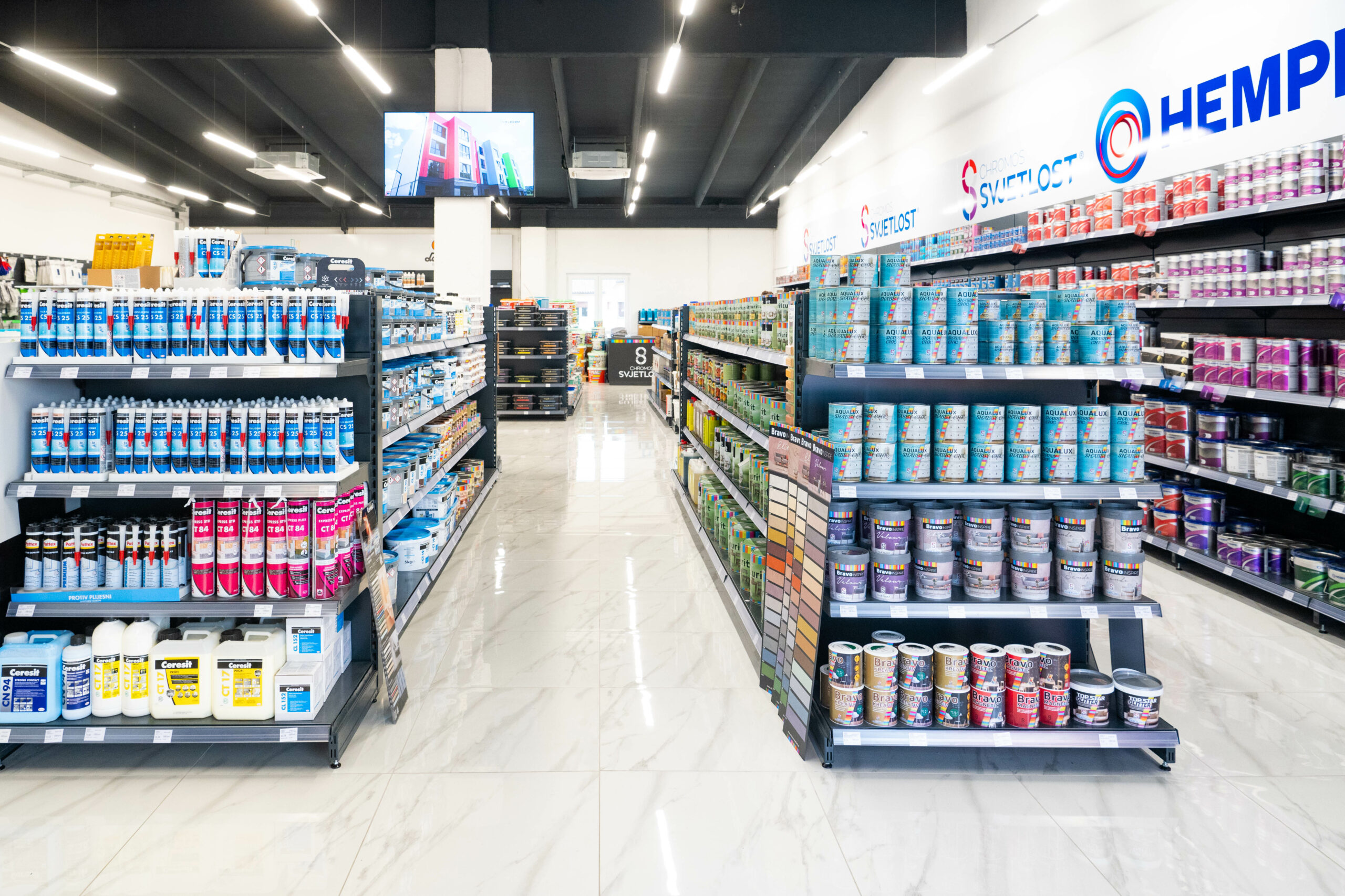 Osim boja i lakova, kupci ovdje mogu pronaći kompletnu opremu i materijale za završne radove u gradnji: od alata i pribora za bojanje, preko sustava za toplinsku izolaciju, do specijaliziranih rješenja za hidroizolaciju, parketni program, bazenski program, i dekorativne tehnike.