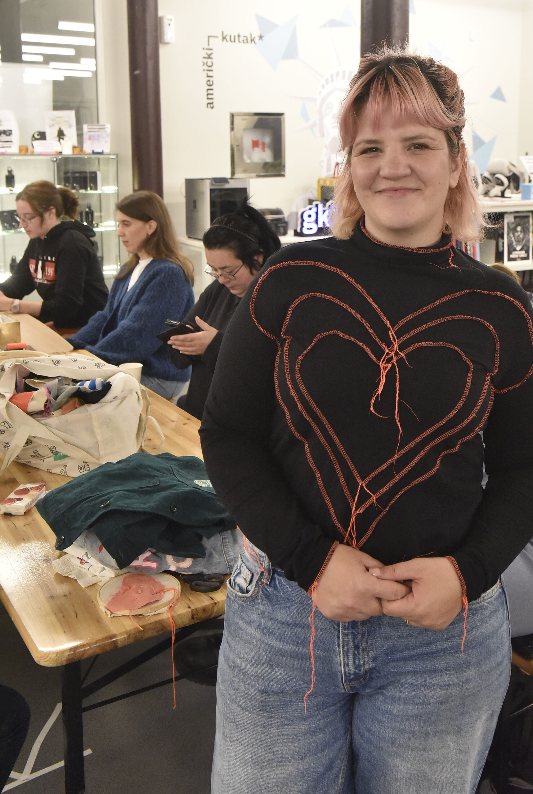 – Zaključila sam da imam nekoliko stvari koje moram zakrpati ručno pa mi je ova radionica došla kao motivacija da to napokon napravim, kaže. Dodaje da se ljubav prema šivanju javila kada je prijateljici za svadbeni poklon izradila vrećicu za kruh na kojoj je izvezla različite motive poput sira i cherry rajčica.
