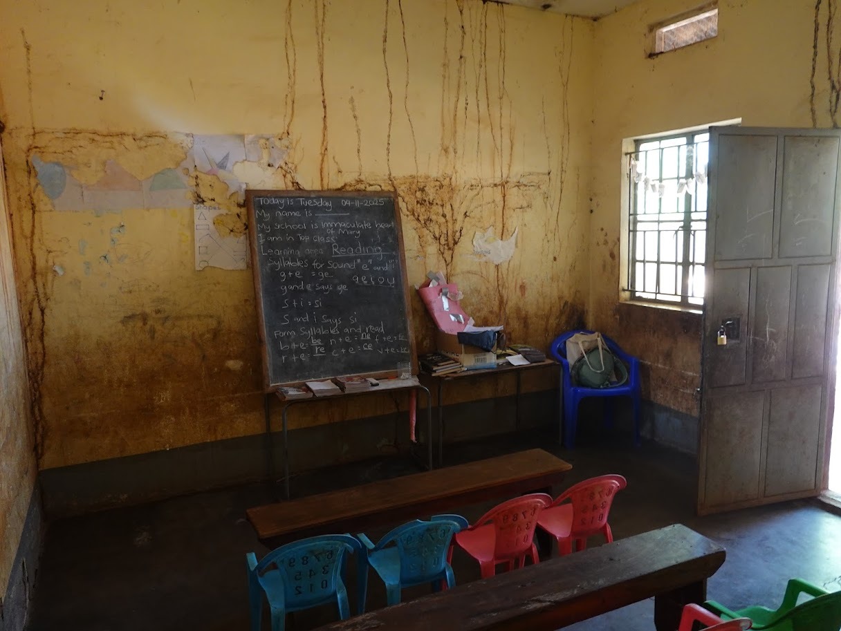 Vrtić u Morulemu broji oko 88 djece, od kojih neka do vrtića pješače i do petnaest kilometara dnevno, jer tu imaju za jesti. Kod kuće – nemaju. Dok učionice kod nas imaju suvremene pametne ploče, projektore, klime, radijatore, velike klupe i obroke po suvremenim nutricionističkim standardima, djeca u Morulemu ne uživaju taj luksuz.