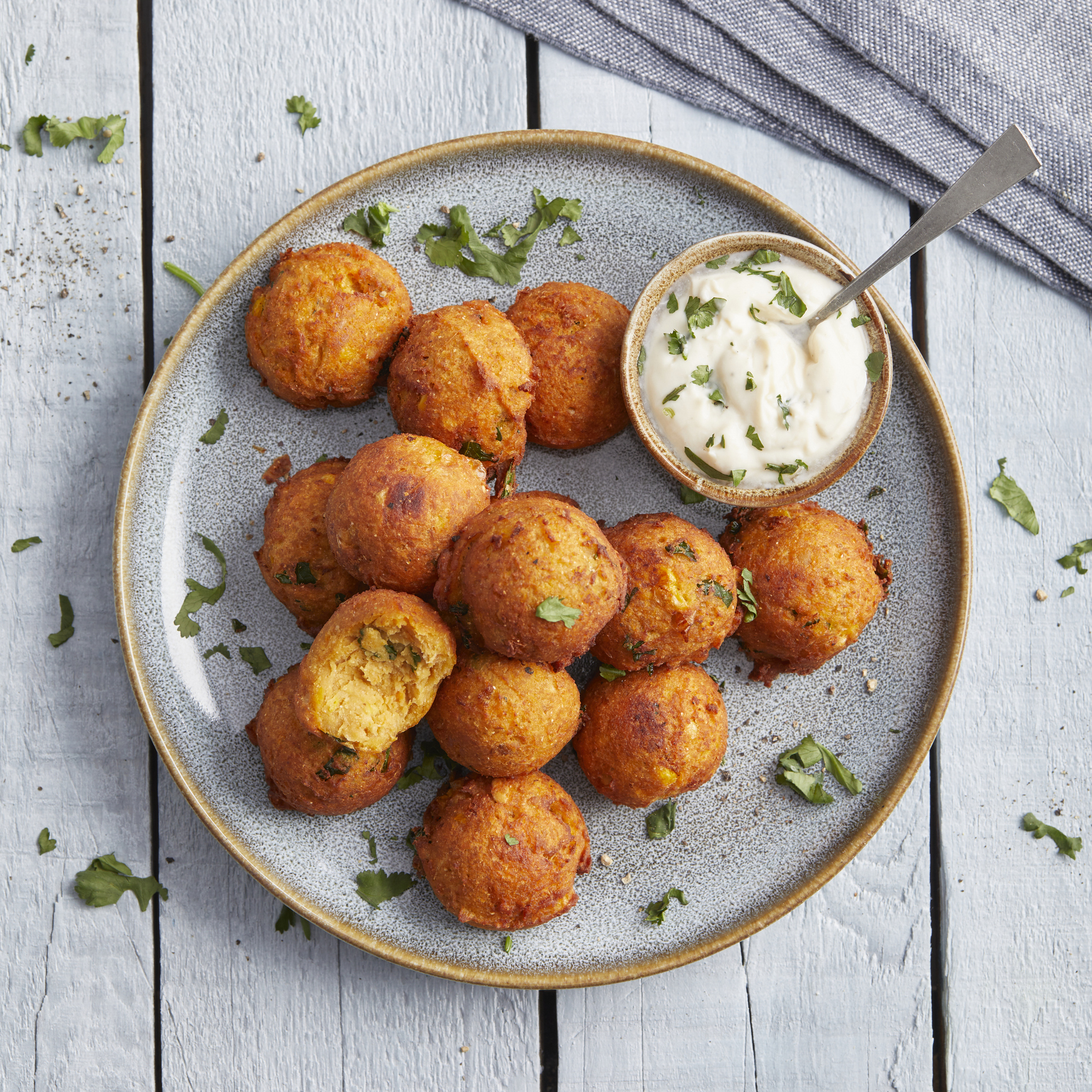 Ako je smjesa previše gusta, dodajte malo maslinova ulja. Smjesu prebacite u zdjelu, prekrijte prozirnom folijom i ostavite da odmara u hladnjaku od 1 do 2 sata. Uzimajte po žlicu smjese i mokrim rukama oblikujte kuglice.