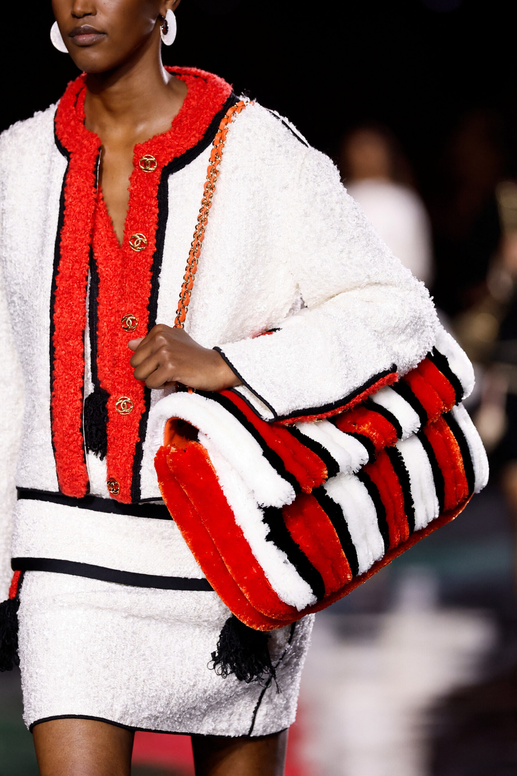 Posebnu pažnju ljubiteljica torbica privukla je Chanelova torba nesvakidašnjeg materijala i dezena, koja ne može biti nezamijećena u crveno-bijeloj kombinaciji na pruge od ekokrzna.