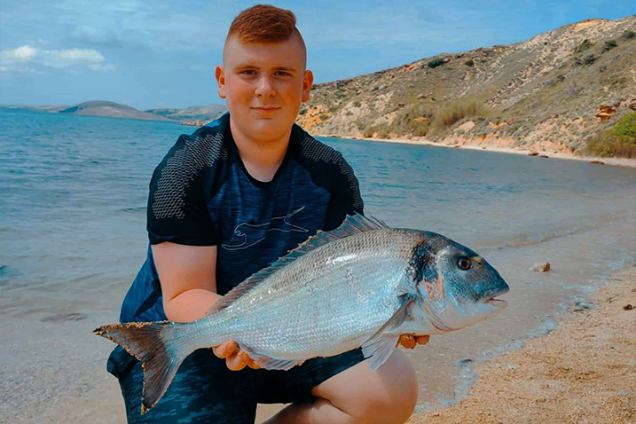 Uslikao sam se za uspomenu jer je ova orada trenutno moja najveća riba koju sam upecao u moru. Težila je 2,5 kilograma.