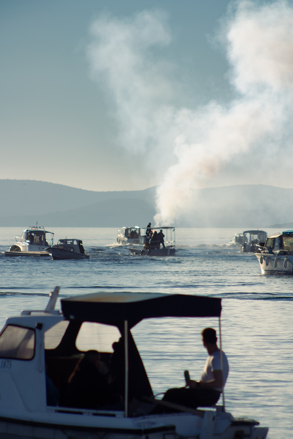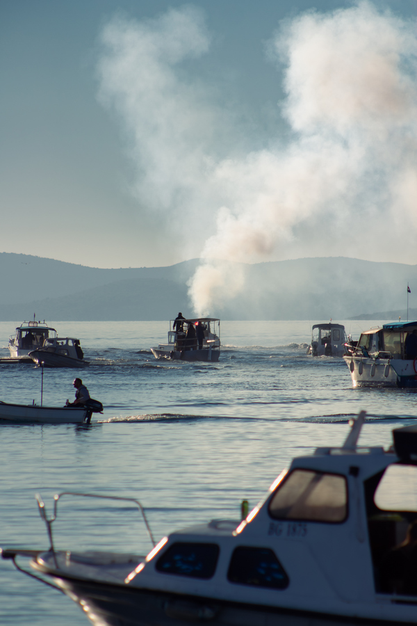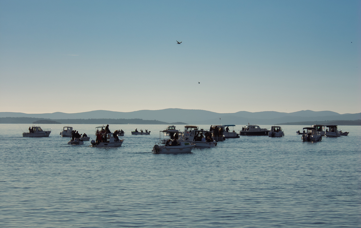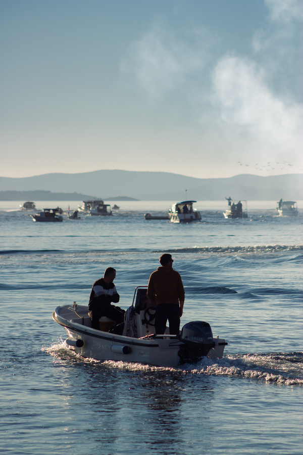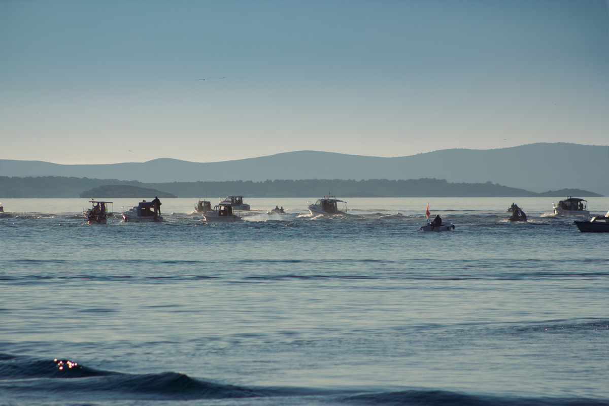 Tako su barke su oko 14:15 sati isplovile u lovnu zonu neposredno ispred Pakoštana da bi ispaljivanje startne rakete označilo početak lova točno u 14:30.
