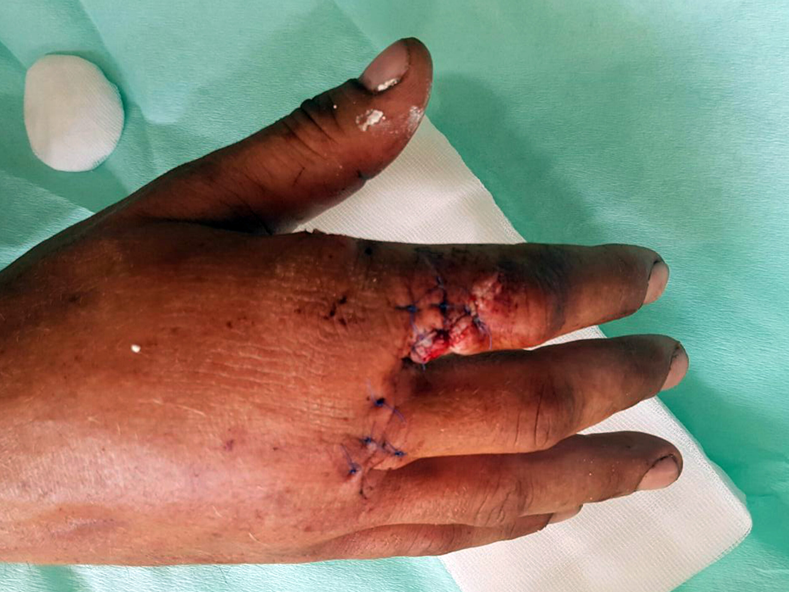 Poželjno je ranu podvezati, no pri tome treba biti oprezan jer se lako može dogoditi da se cirkulacija u potpunosti zaustavi, što znatno otežava ionako teško stanje povrijeđene osobe. Pored toga, unesrećeni je najčešće i u šoku, što se ne smije previdjeti. Svakako je potrebno čim prije potražiti liječničku pomoć.