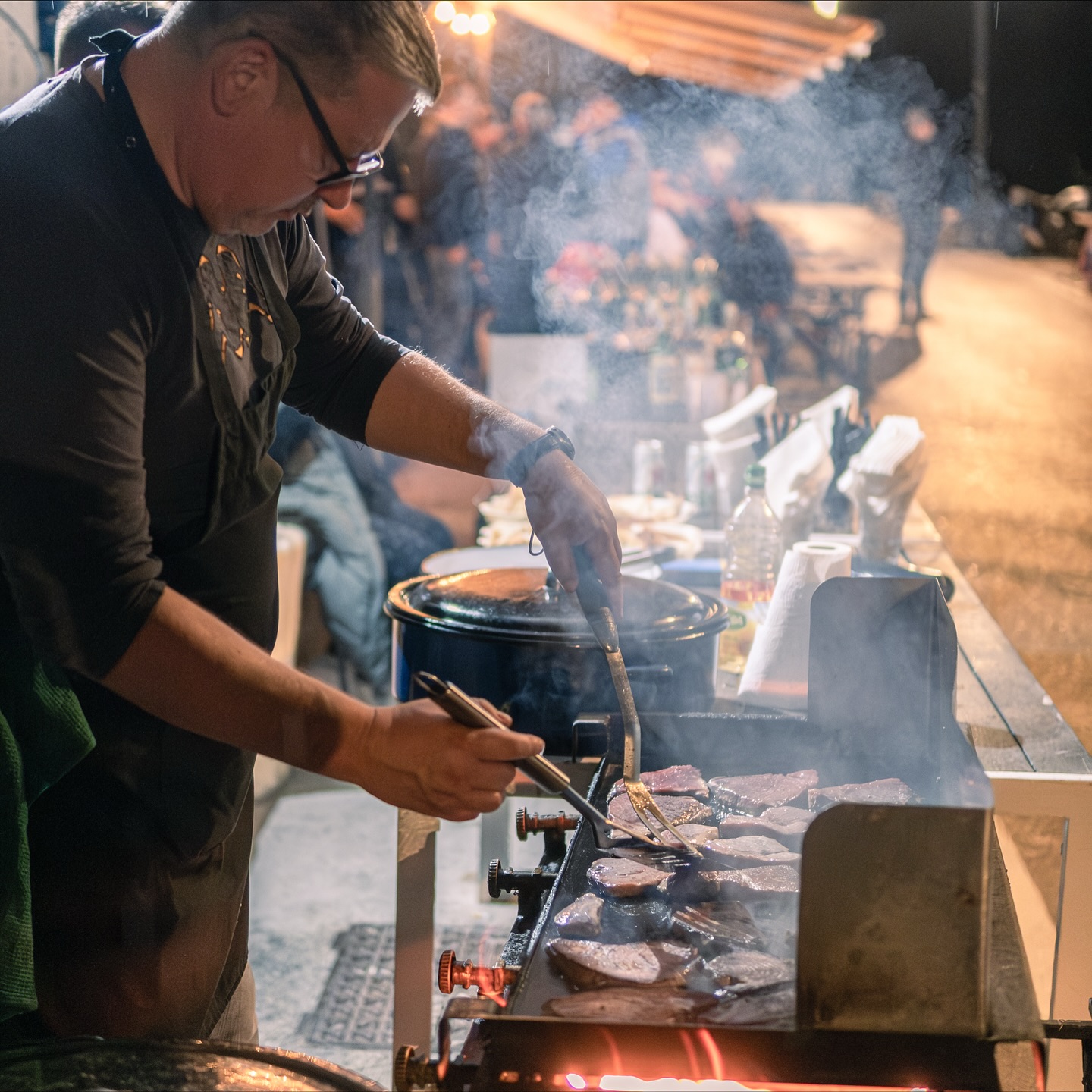 Za natjecatelje i brojne pratitelje i goste manifestacije organizatori  su osigurali večeru uz živu glazbu u korijenu Malog mosta ispod župne crkve.