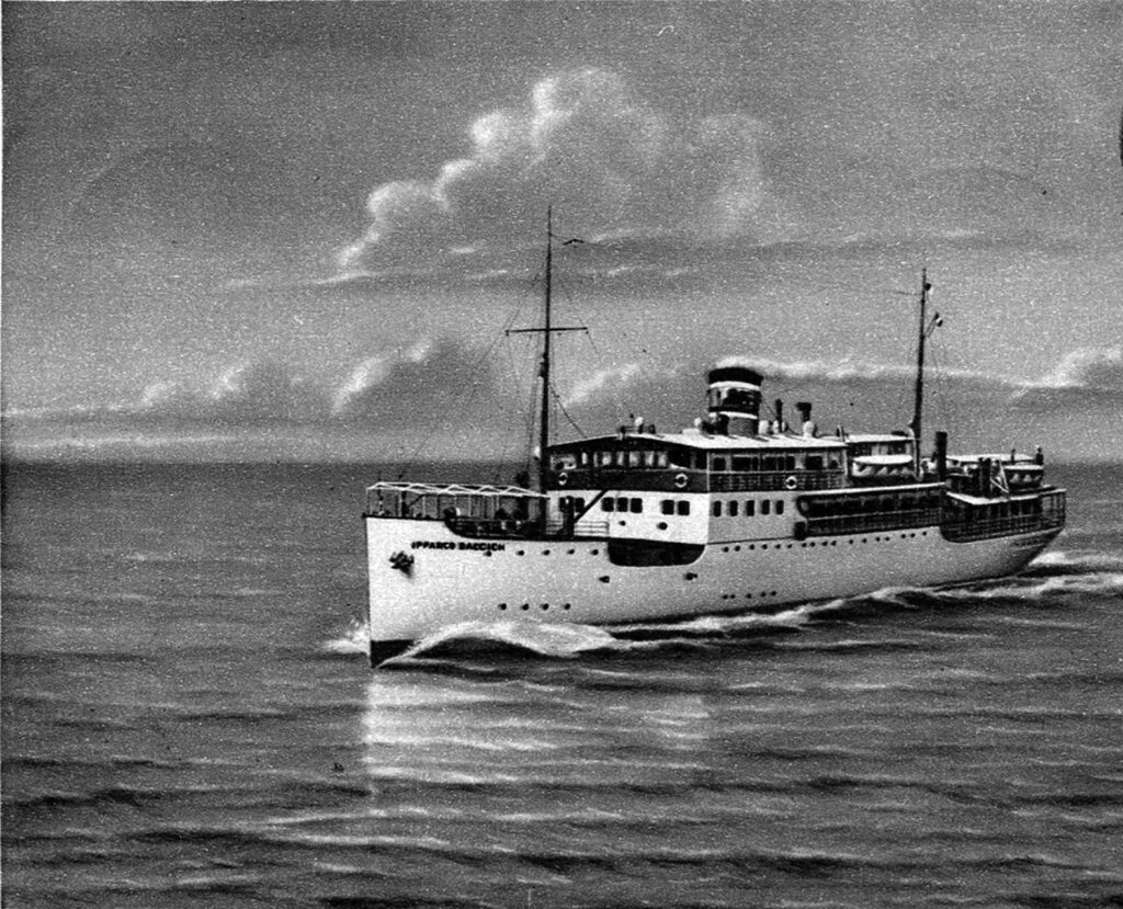 Gotovo pola stoljeća nakon prvih jadransko-sicilijanskih veza, 29. lipnja 1940. kraljevskim dekretom odlučeno je da parobrod »Francesco Rismondo«, upisan u zadarski upisnik brodova i u vlasništvu Societa Fiumana di Navigazione, bude rekviriran u pomoćno državno brodovlje radi održavanja veze između Messine i Eolskih otoka. Istodobno su rekvirirani i parobrodi »Limbara«, »Nesanzio« (Istria-Trieste S.A. a Vapore, Trieste), »Pola« (Societa Fiumana di Navigazione, Rijeka) te već spomenuti »Ipparco Baccich«.