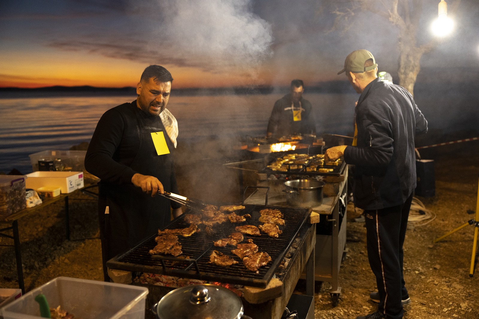 I dok su lignjari pokušavali nasukati što je moguće kvalitetniji ulov, dotle je vrijedni tim kuhara pripremao nizove gradela na kojima su se uz klasični mesni meni našle podlanice i sabljarka koja je oduševila sve koji su je probali, dok je veprovina složena na gulaš s pljukancima bila pak posebna priča. Bio je tu i brudet od hobotnice i sipe s palentom, što bi rekli, za prste polizati.