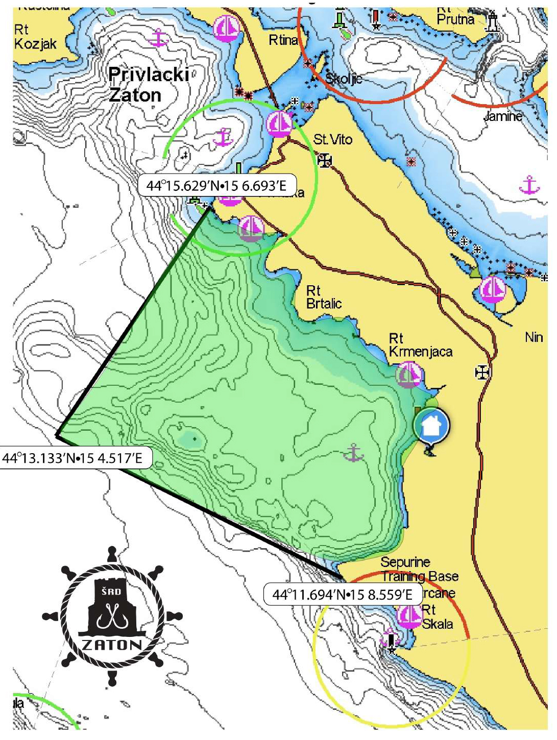- Lovna zona se proteže od rta Artić do rta Punta Skala uključujući i Planuru. Karta ribolovne zone je u prilogu.