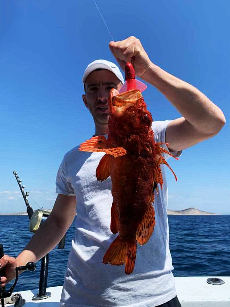 – A nakon kraće stanke i kratke marende prolazeći u driftu točno preko braka osjetio sam jak ugriz, iznimno jako povlačenje nakon čega sam udario kontru i odmah počeo izvlačiti ribu. Ovaj put je otpor bio puno jači tako da se jasno moglo naslutiti da dolazi veća riba. I imao sam pravo. Pri samoj površini se ukazala velika, jarko crvena škarpina koja je brzo završila u špurtilu te izazvala opće oduševljenje na brodu, a na vagi pokazala 3,2 kilograma. Tu škrpinu sam ulovio na silikonsku varalicu JLC XIPI tešku 150 grama – ispričao nam je Alen Hodžić.