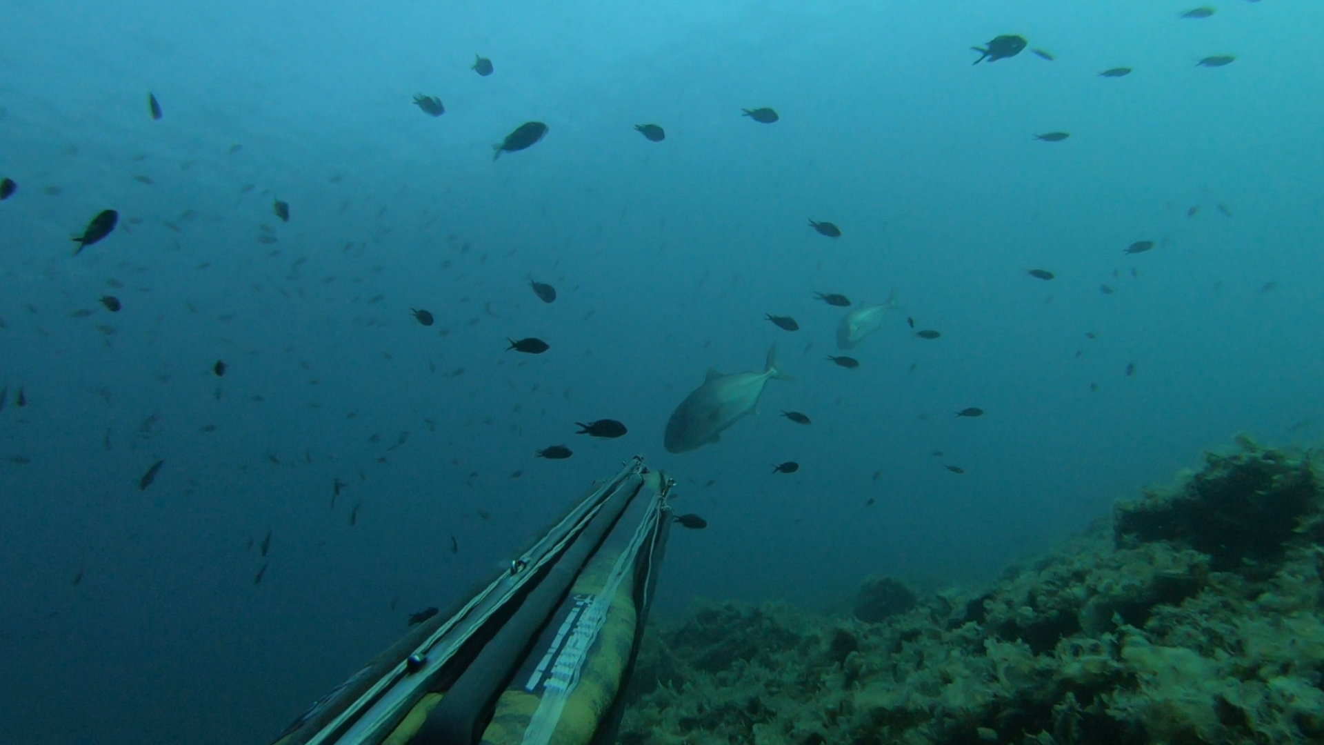 A onda, otprilike na četiri metra od vrha puške predvodnik se okrene na bok dajući do znanja da mi nema namjeru prići bliže. Ja skamenjen u totalno neprirodnom položaju poput slova 'U', nemajući izbora, pritišćem obarač i nova podvodna puška na moje zadovoljstvo savršeno odrađuje posao.