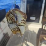 Loveći u akvatoriju Budvanske seke, na nekih 13 milja od obale, Zoran je ulovio crvenopjegavu rakovicu (Calappa granulata, Linnaeus, 1758).