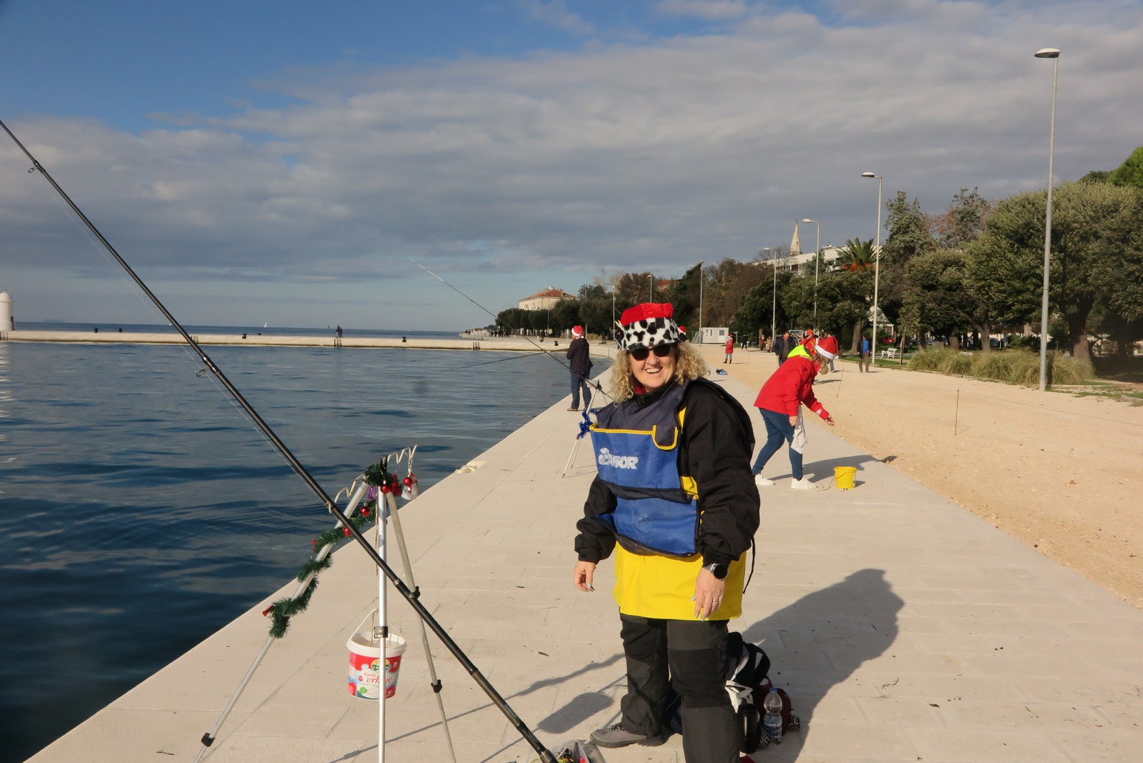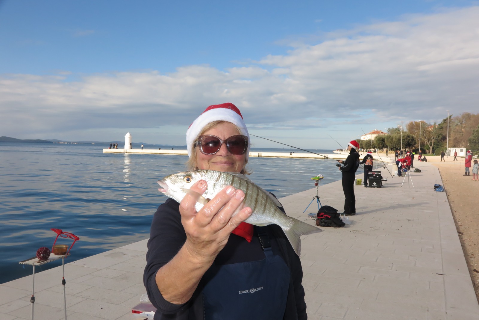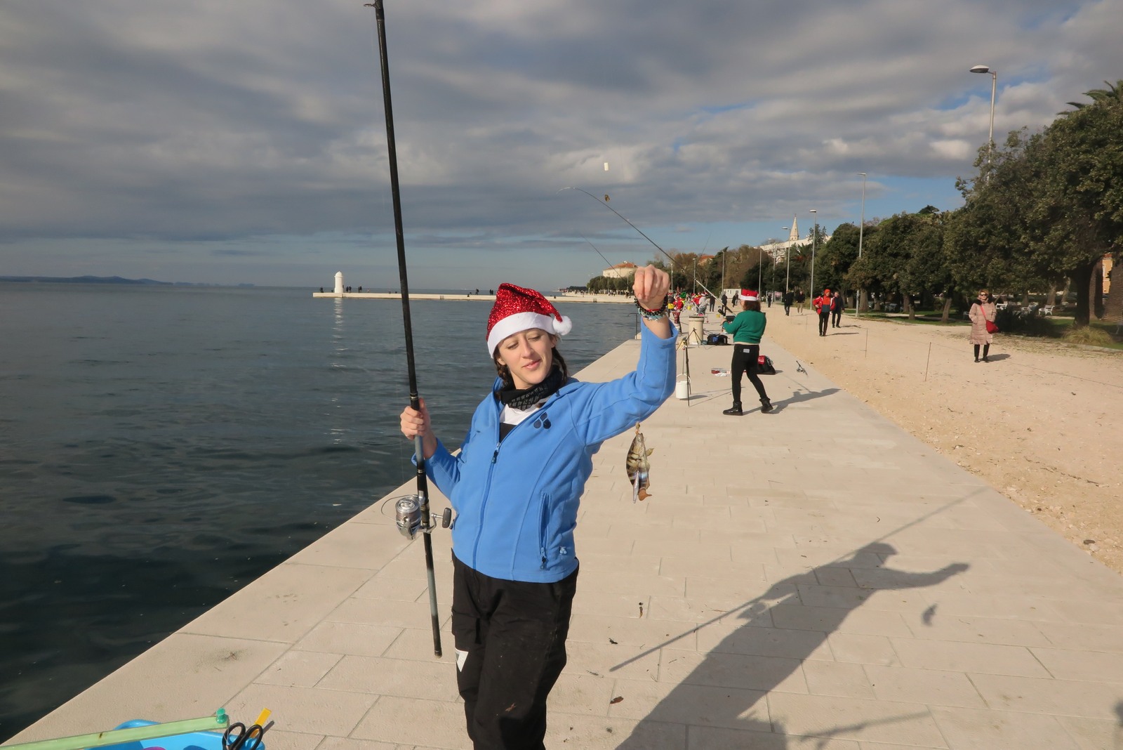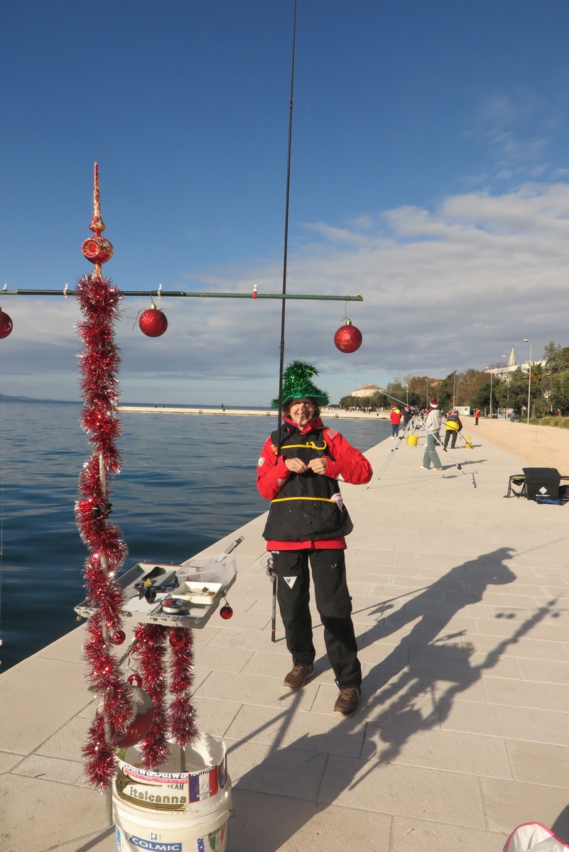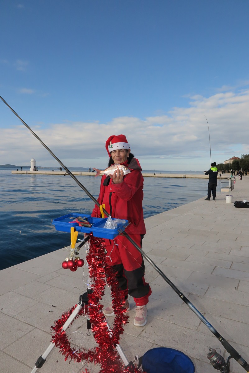 Petnaestak seniorki iz klubova zadarske županije je ispred hotela Zagreb s obale lovilo ribu u natjecateljskom poretku s tim da su sve bile odjevene u blagdansko-adventskom duhu.