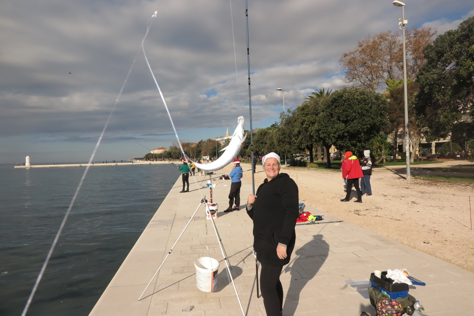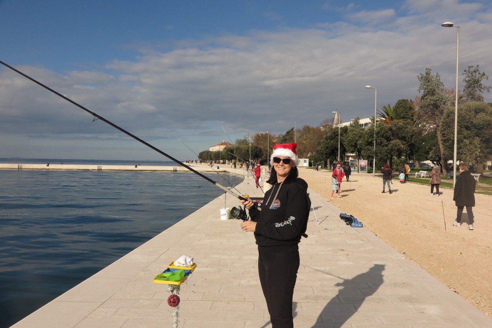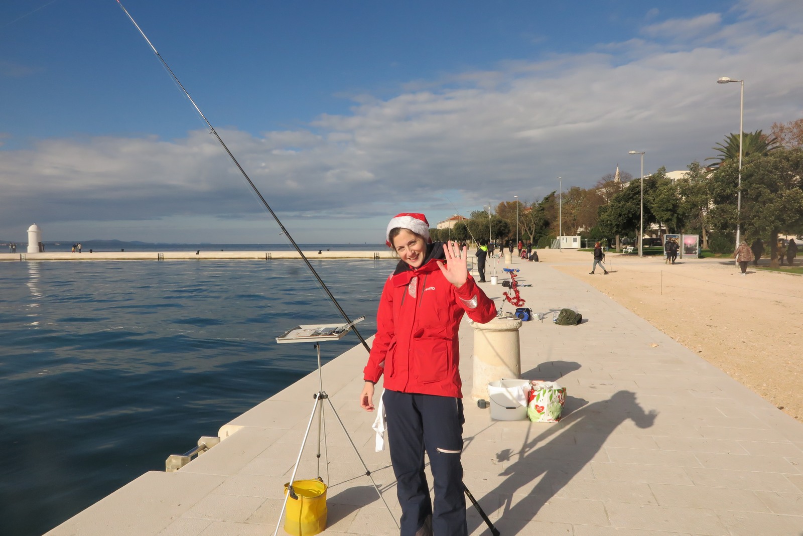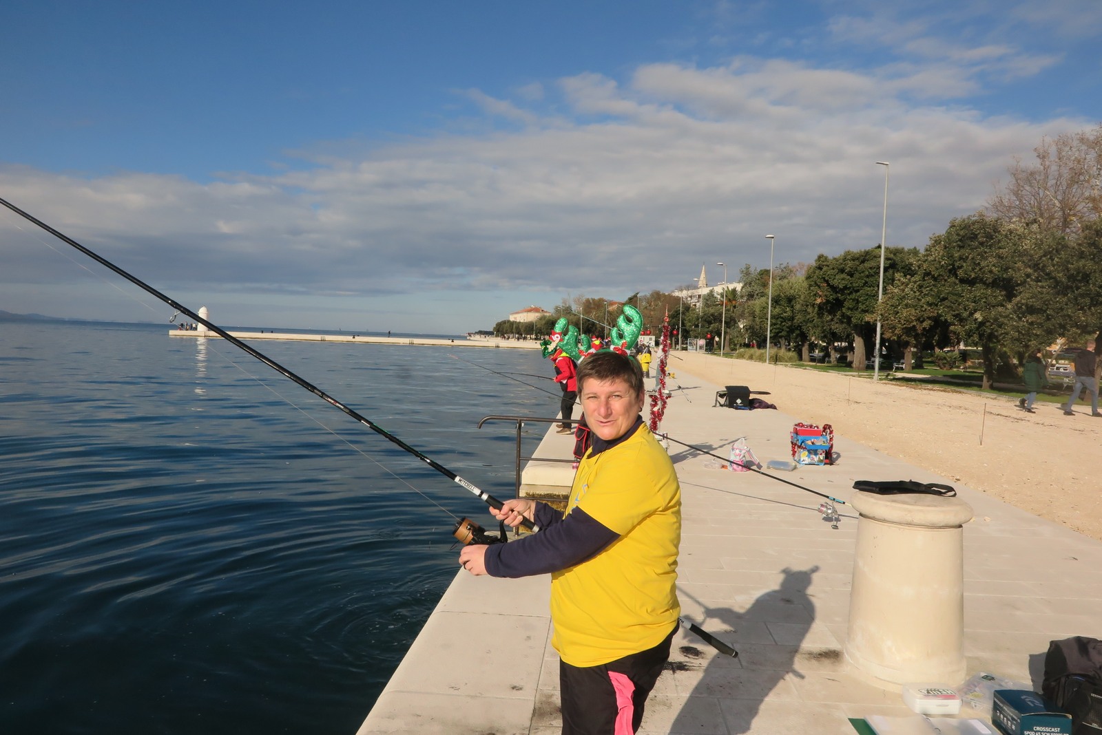 Petnaestak seniorki iz klubova zadarske županije je ispred hotela Zagreb s obale lovilo ribu u natjecateljskom poretku s tim da su sve bile odjevene u blagdansko-adventskom duhu.