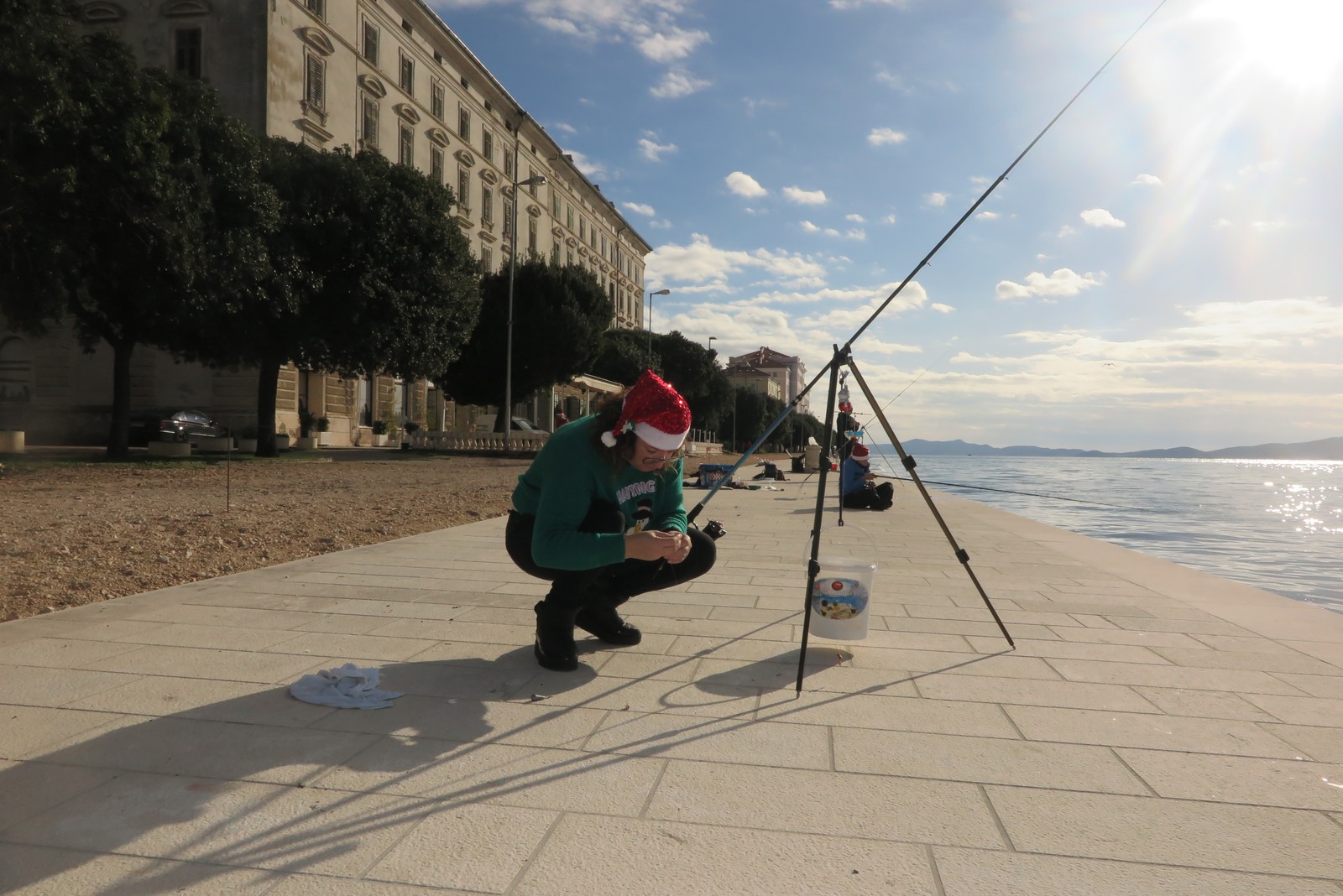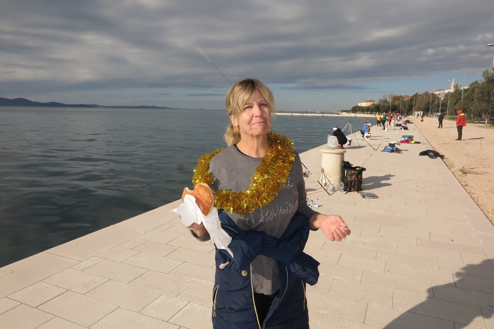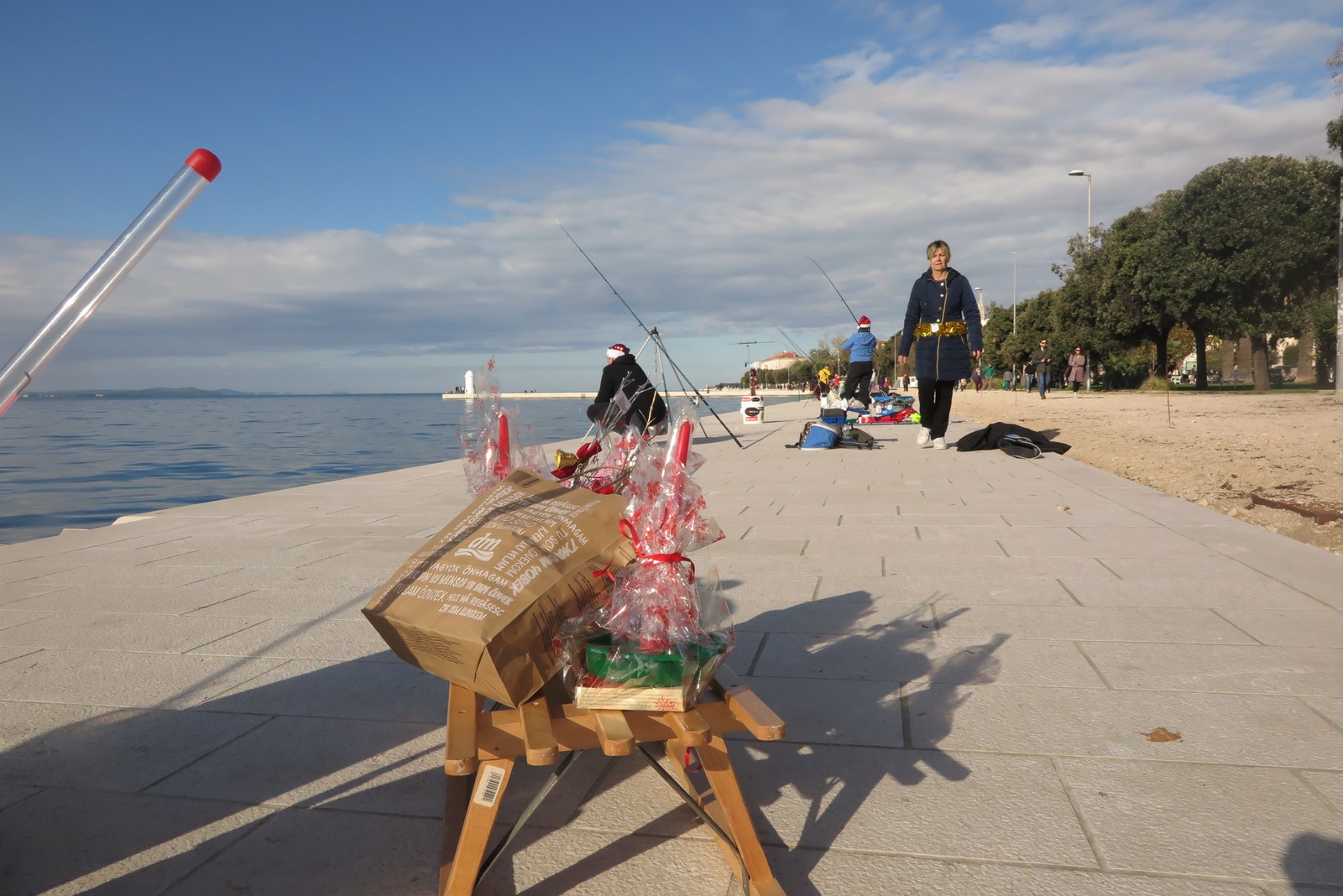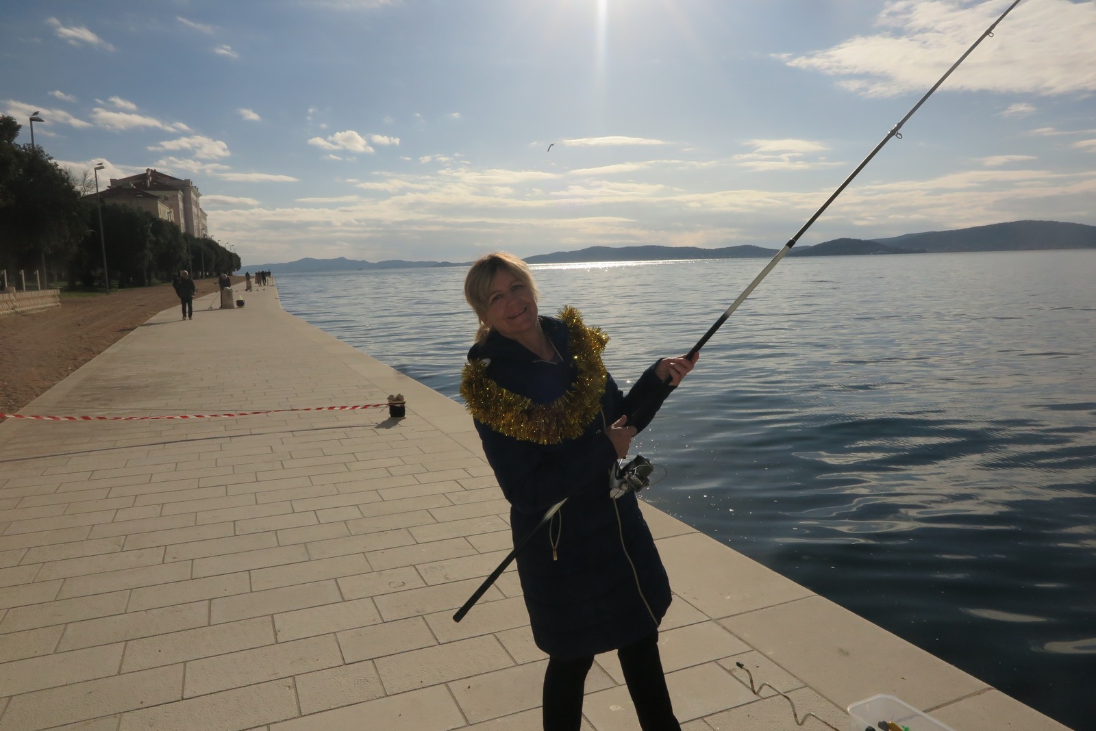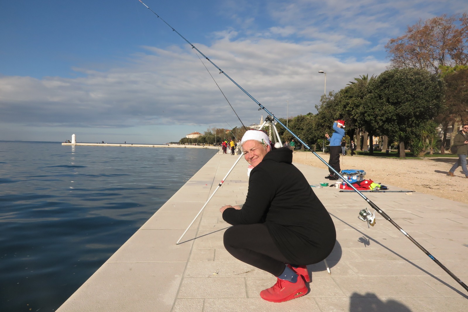 Petnaestak seniorki iz klubova zadarske županije je ispred hotela Zagreb s obale lovilo ribu u natjecateljskom poretku s tim da su sve bile odjevene u blagdansko-adventskom duhu.
