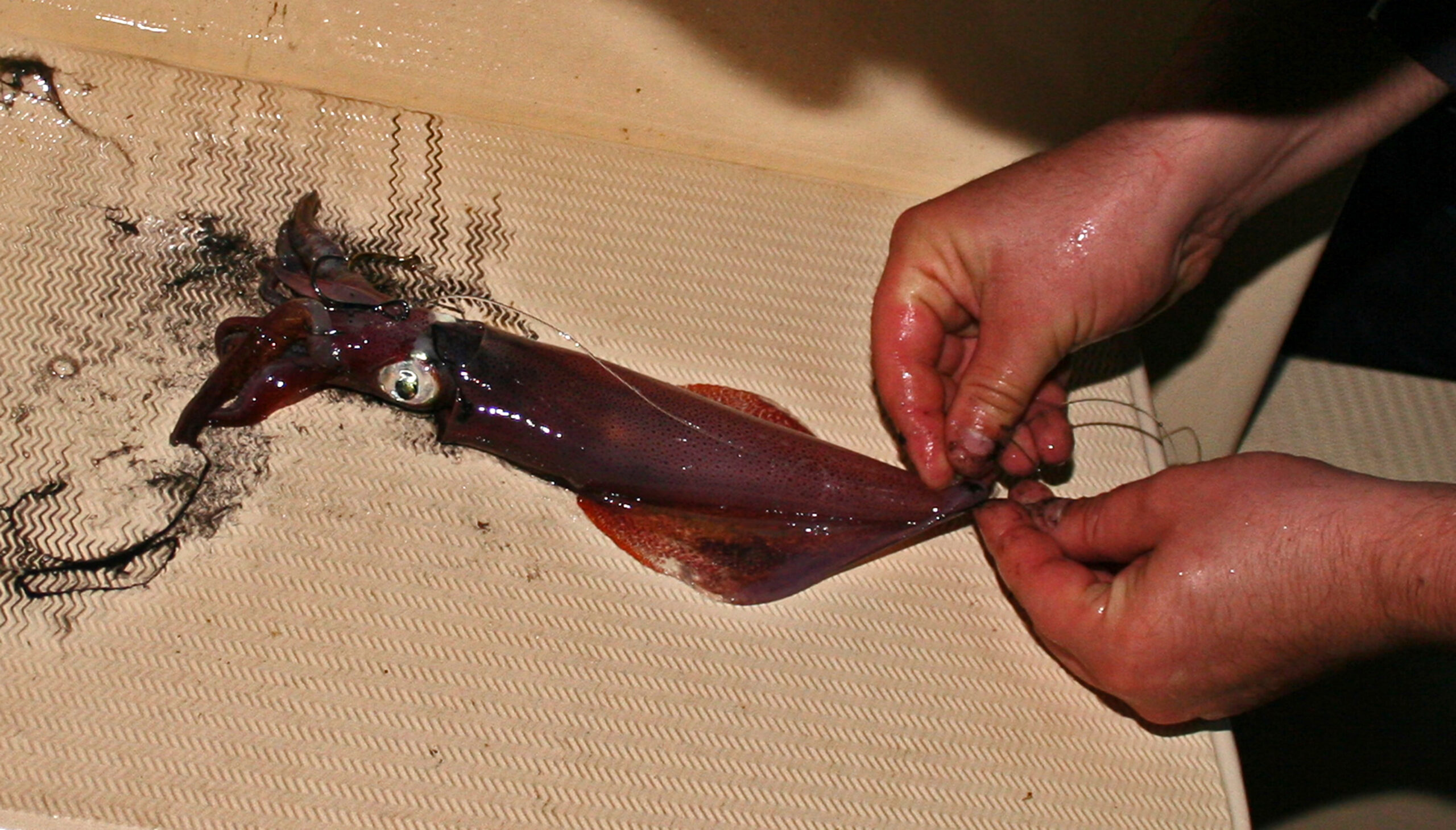 Tako naješkanu lignju, ako je u dobroj kondiciji i ako nije bilo udarca ili sudara s preprekama, ne moramo kontrolirati barem dva sata.