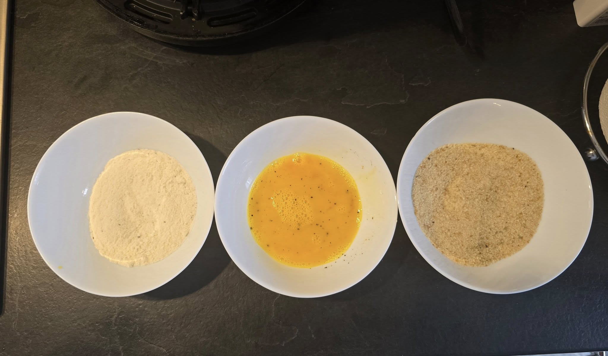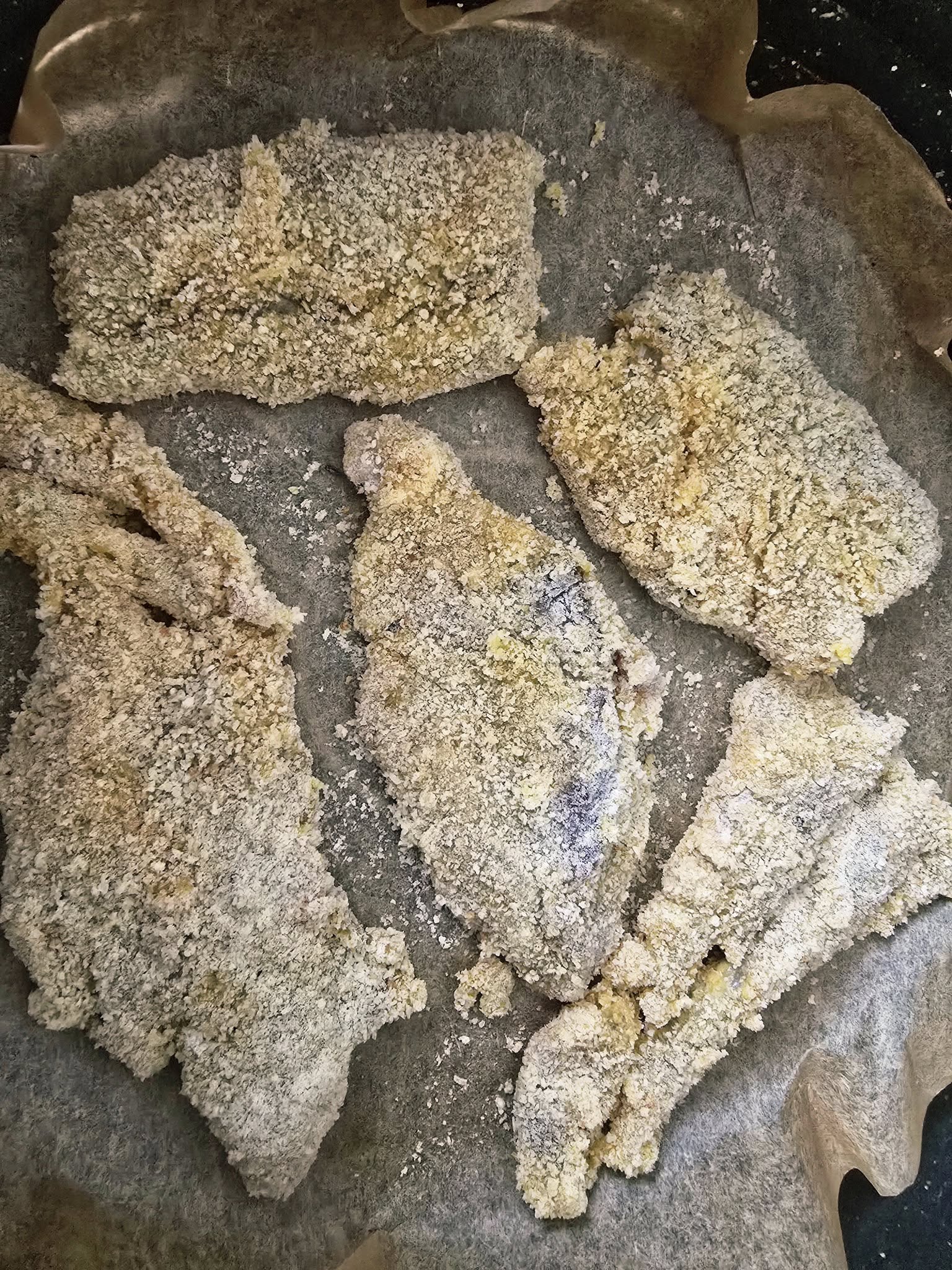 – Onda sam nastavio sa standardnom pripremom, brašno, jaja, kručne mrvice i početak finalne pripreme.