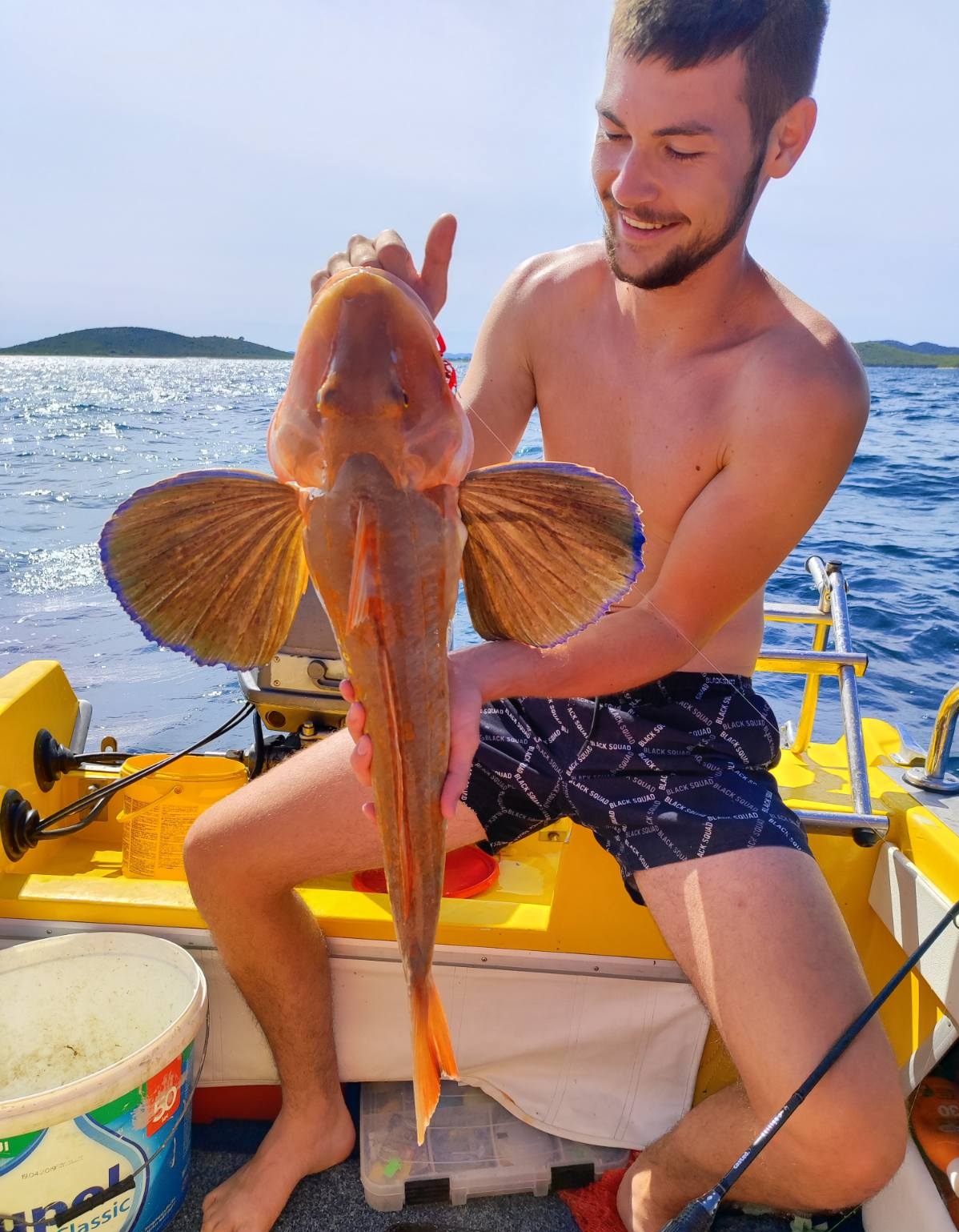 Činilo mi se da su mi neke manje ribe skinule tračiće lignja s udica zbog čega sam počeo polako dizat kaburu. I negdje u pola mora, na 15 – 20 metara od dna, nešto je jako moćno udarilo i odmah počelo izvlačiti upredenicu. Uopće nisam imao pojma koja bi riba mogla biti na priboru pošto je borba bila prilično čudna…