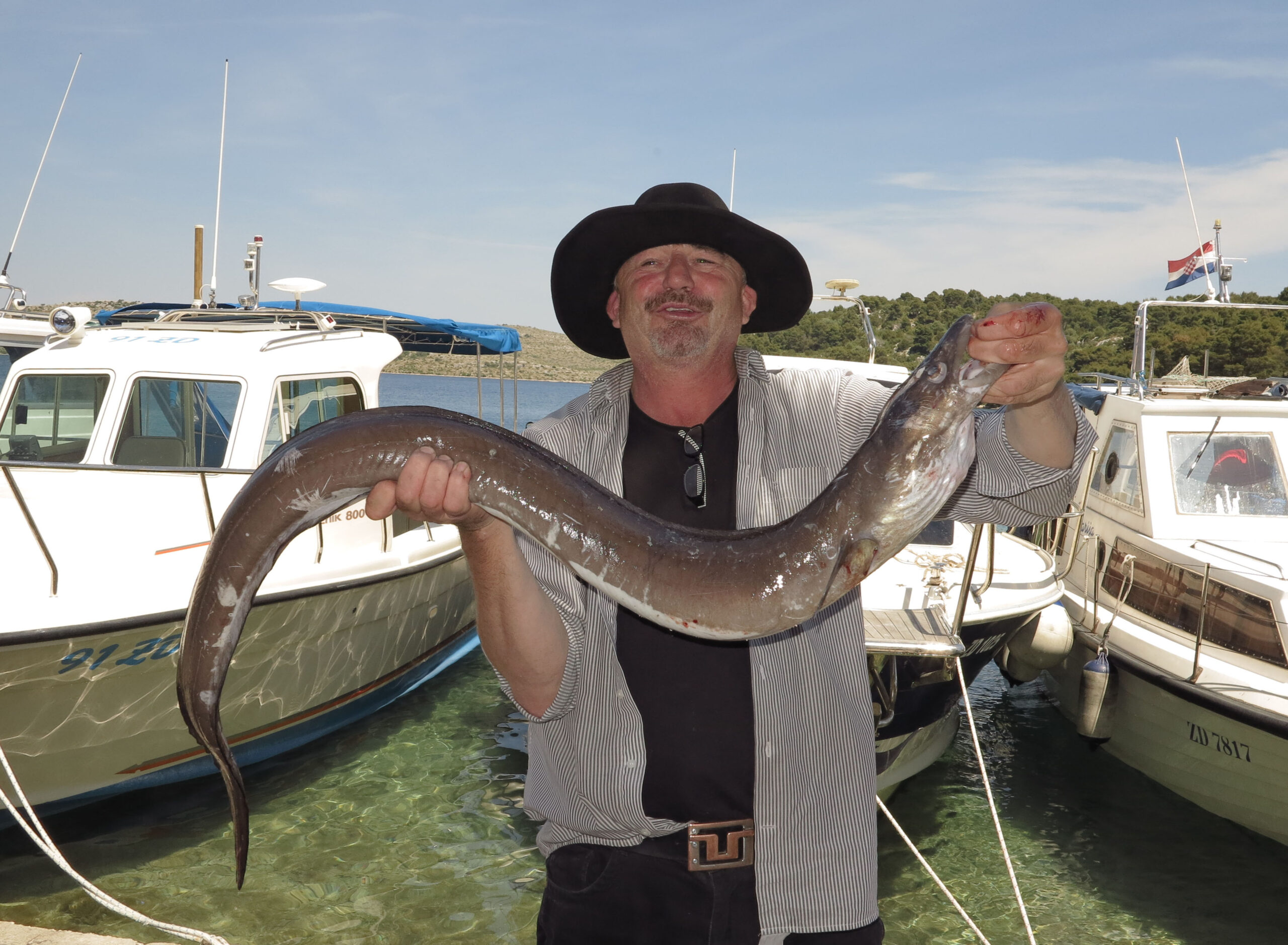 Zakačeni ugor cijelo vrijeme pokušava pregristi predvez bijesno se batrgajući i tresući cjelokupan pribor, a ako je primjerak kapitalan, tada ni ribolovac nije pošteđen tog bijesa već se i sam mora boriti s održavanjem ravnoteže. Tako izvlačenje ugora od svojih 6 do 8 kilograma težine zakačenog na daljini od 60 i dubini od 30 metara oko dva sata poslije ponoći, na vanjskoj strani nekog kamenitog otoka na stijenama mokrim od rošade, nikako nije ni jednostavno i bezazleno…