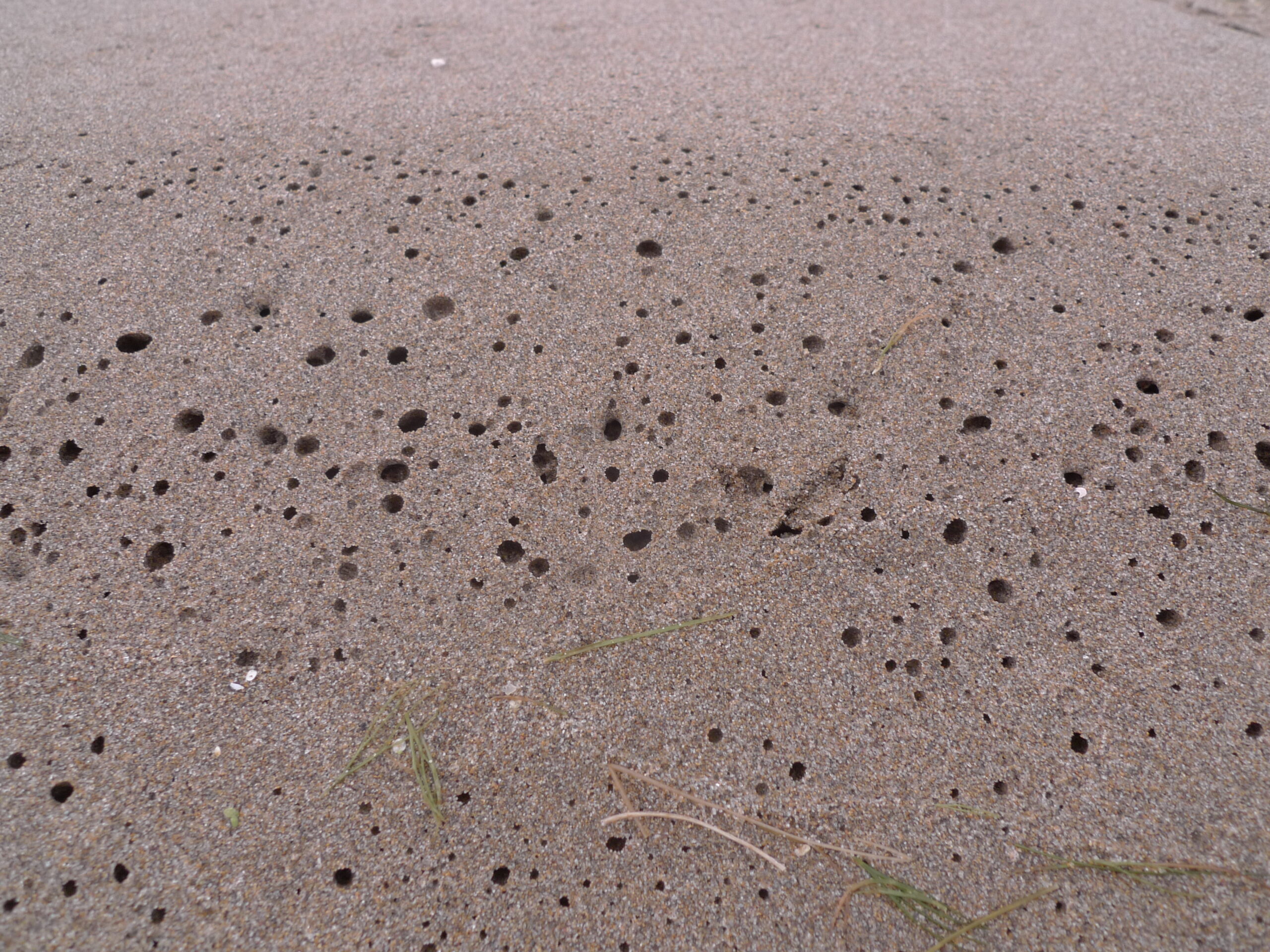 Na ovom se dijelu mogu vidjeti male piramide tamnijeg pijeska s rupicom u sredini.