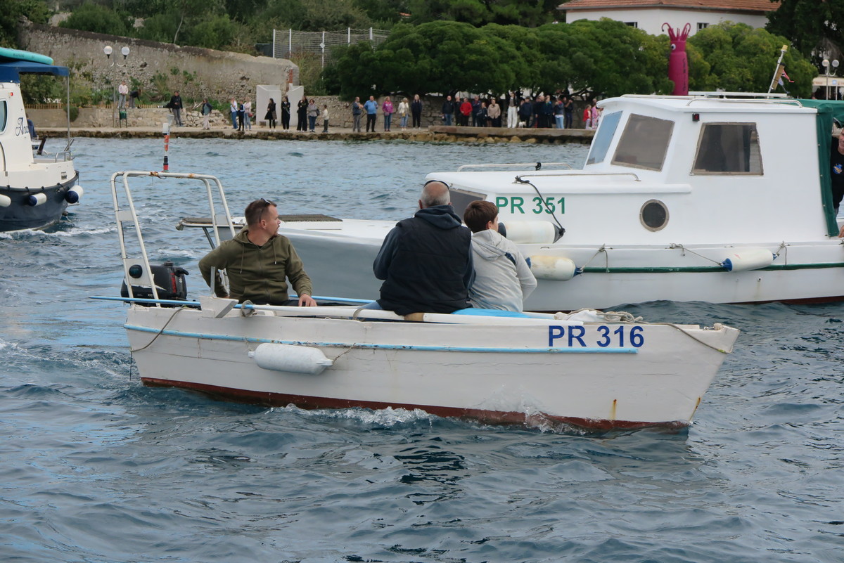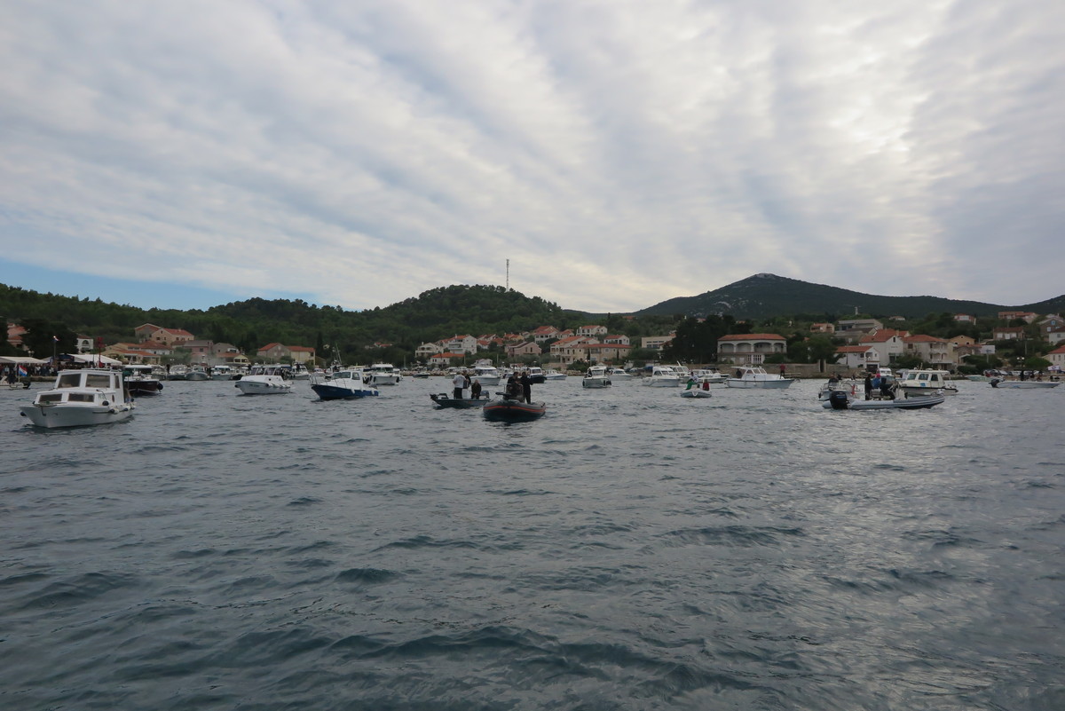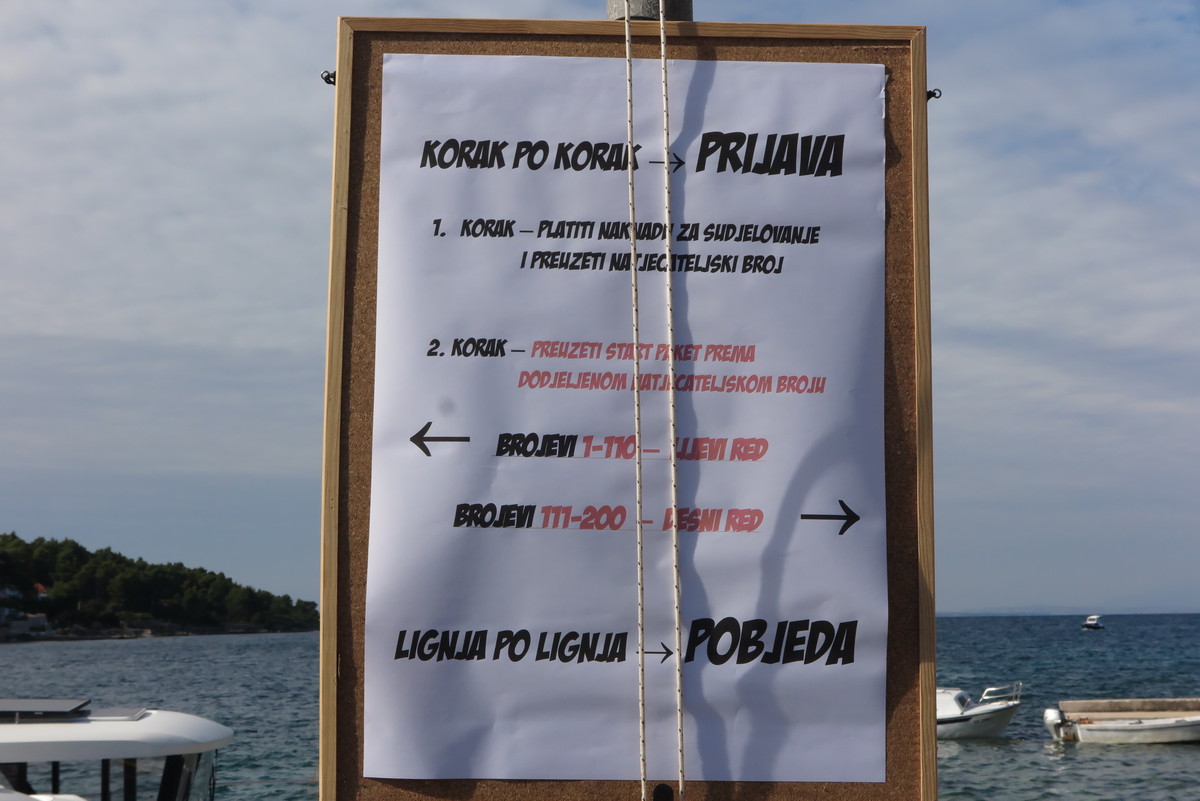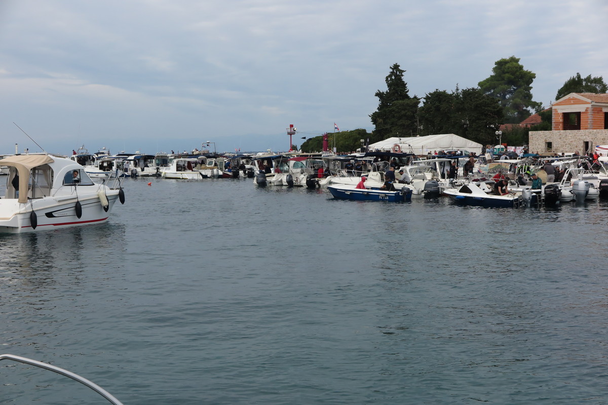 A onda se sve to odjednom prepolovilo jer je došao trenutak isplovljavanja. Brodice su se razvezale i zastale na liniji na rubu uvale čekajući da sudački brod oglasi signal za početak natjecanja u 16:30 sati.