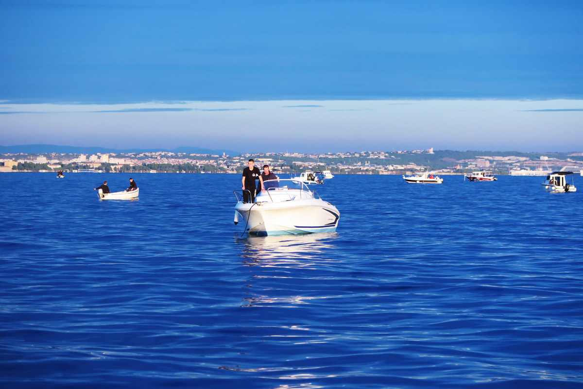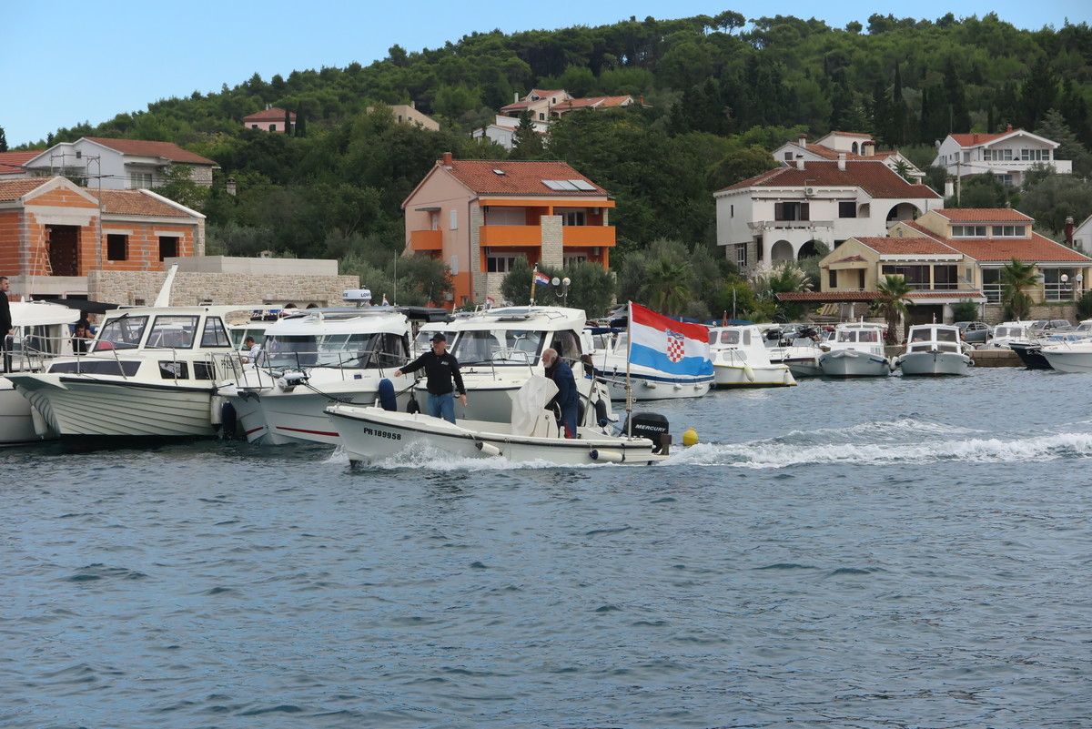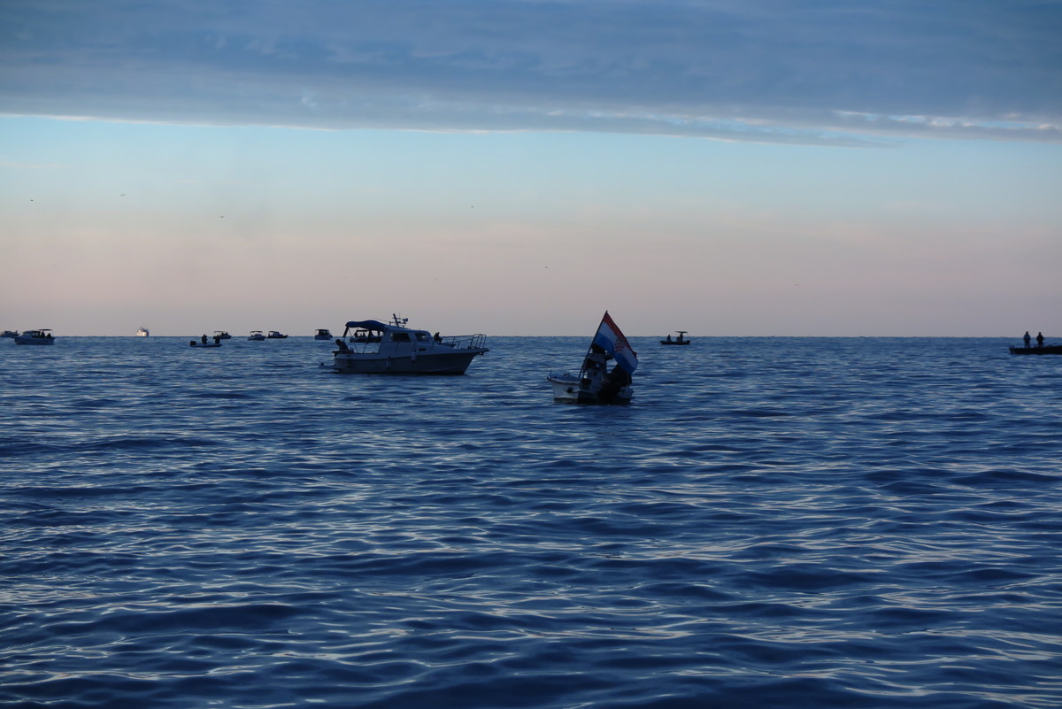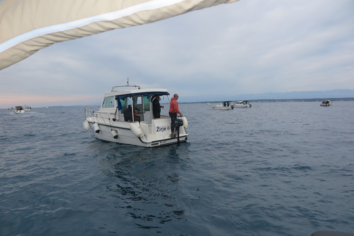 A onda se sve to odjednom prepolovilo jer je došao trenutak isplovljavanja. Brodice su se razvezale i zastale na liniji na rubu uvale čekajući da sudački brod oglasi signal za početak natjecanja u 16:30 sati.