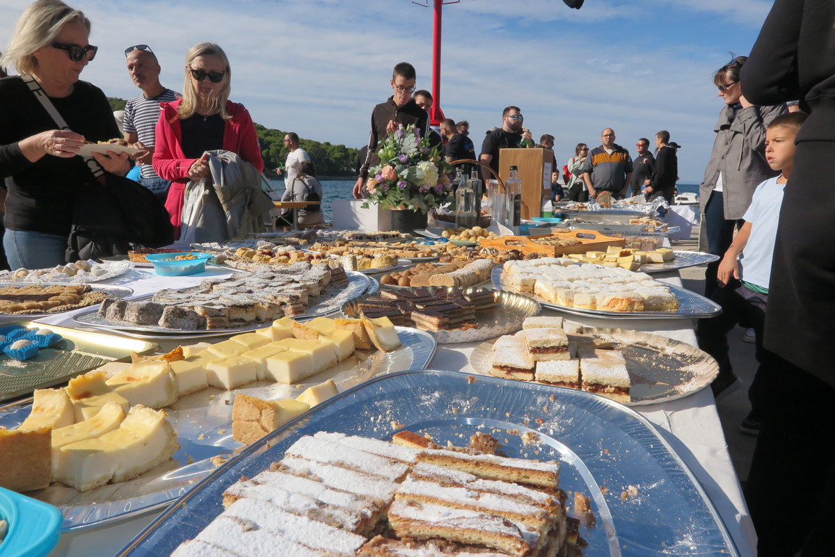 Vala puna brodica, šator ispunjen glazbom, a na rivi stolovi ispunjeni biranim pićima, kolačima, slanim i mariniranim inćunima, delicijama koje su pripremile vrijedne Lukoranke, a našlo se mjesta i za klapu, i lokalne pjevače, ali i za frigane gavune i još gomilu svega što se opisati jednostavno ne može, jer je sve nalikovalo na ogromnu feštu u kojoj piće i hrana, uz neprestanu zabavu, samo bez prekida sniježe i sniježe.