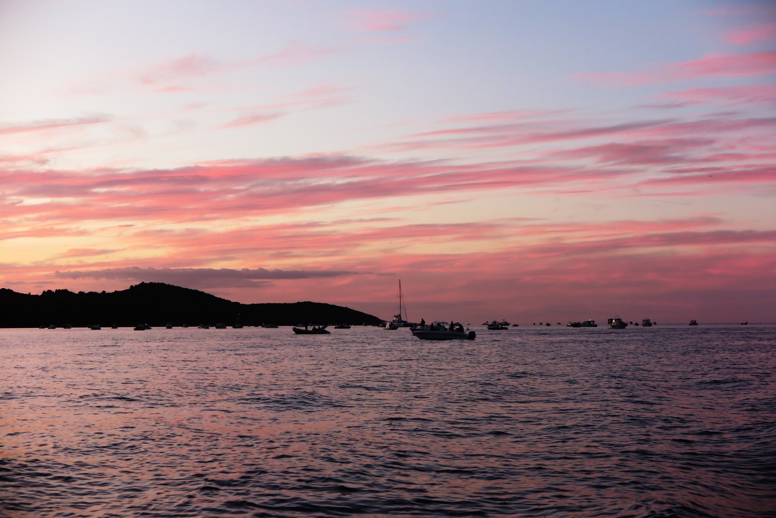 A onda se sve to odjednom prepolovilo jer je došao trenutak isplovljavanja. Brodice su se razvezale i zastale na liniji na rubu uvale čekajući da sudački brod oglasi signal za početak natjecanja u 16:45 sati.